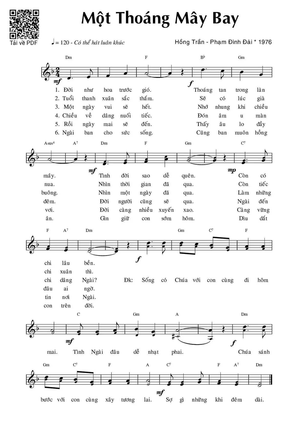 Sheet Một thoáng mây bay PDF (Phạm Đình Đài), hợp âm