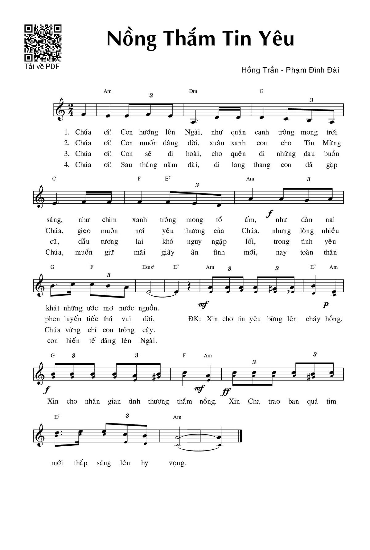 Sheet Nồng thắm tin yêu PDF, hợp âm