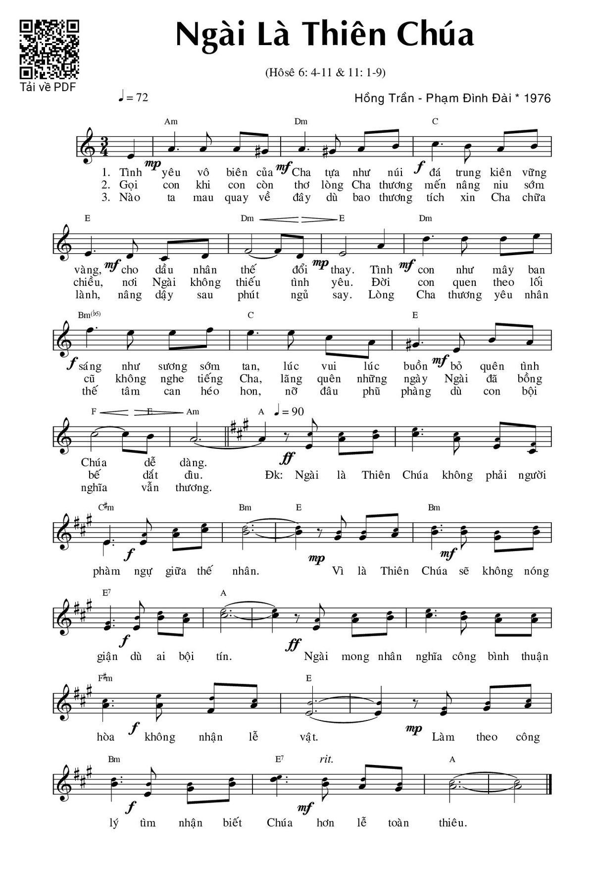 Sheet Ngài là Thiên Chúa PDF (Phạm Đình Đài), hợp âm