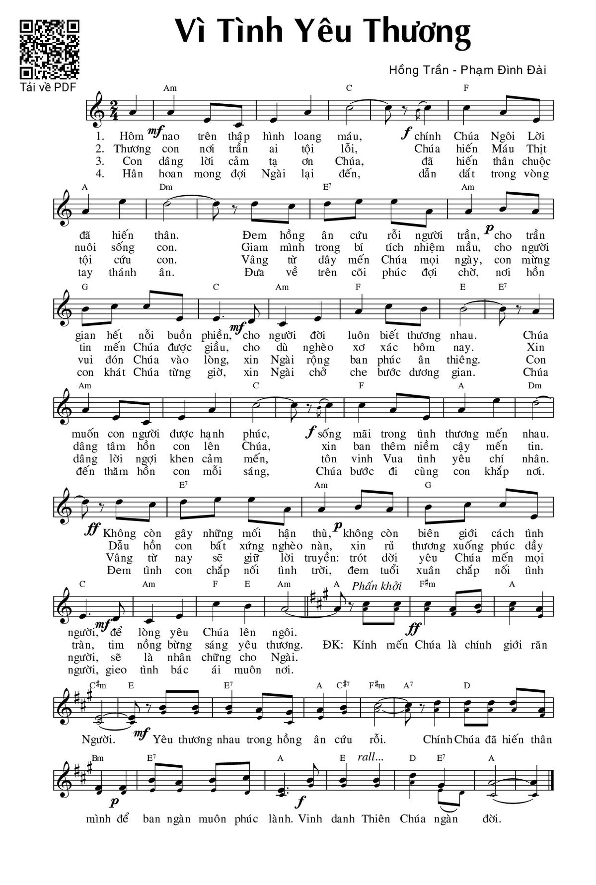 Sheet Vì tình yêu thương PDF (Phạm Đình Đài), hợp âm