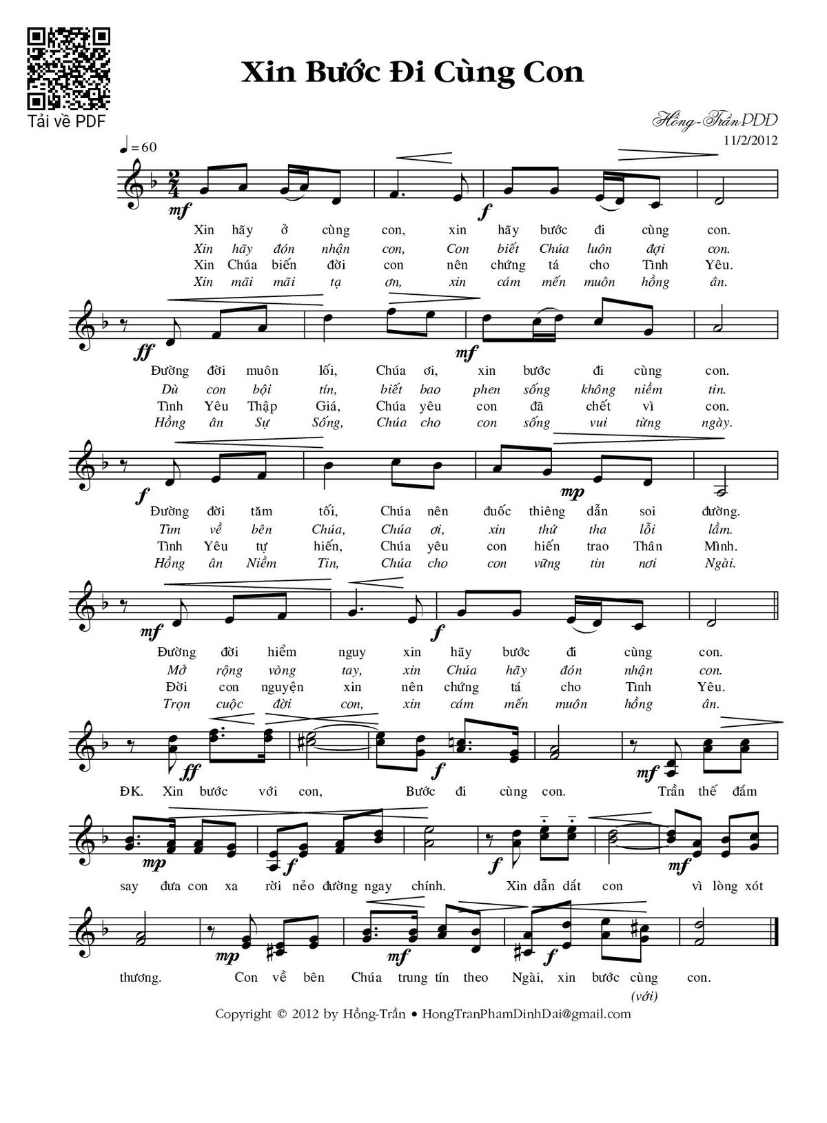 Trang 1 của Sheet nhạc PDF bài hát Xin bước đi cùng con - Phạm Đình Đài