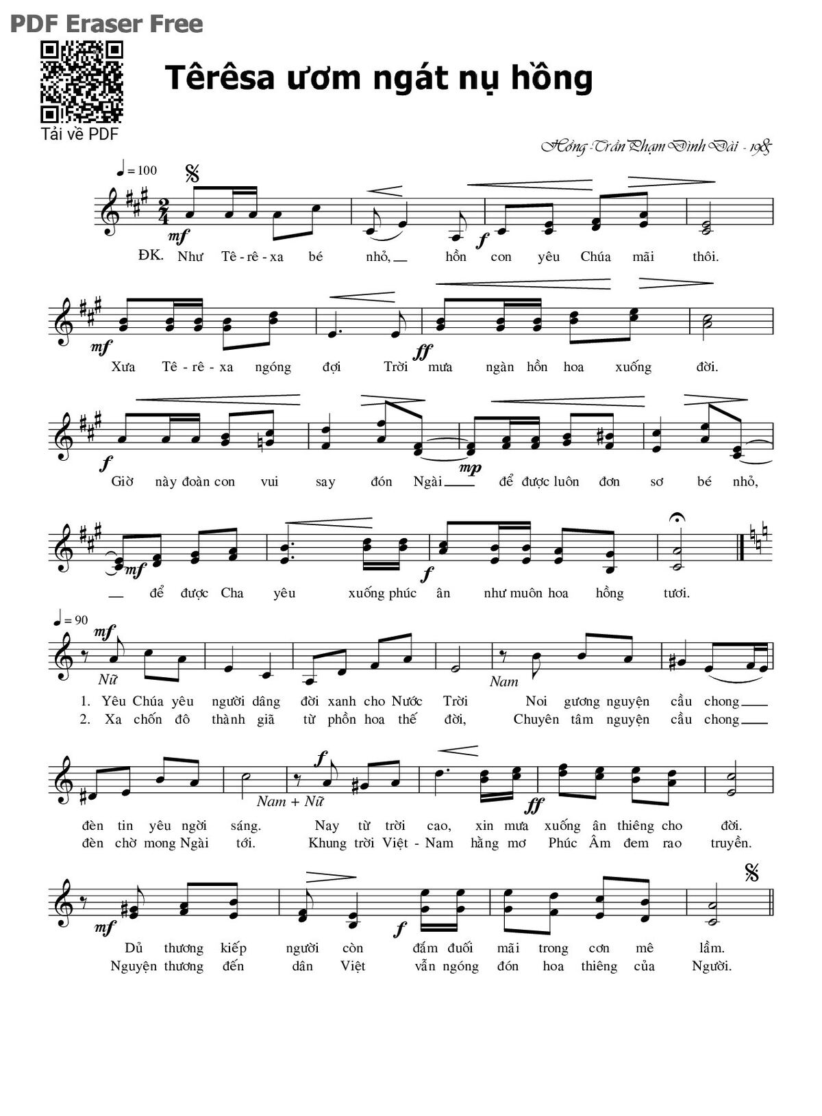 Trang 1 của Sheet nhạc PDF bài hát Têrêsa ươm ngát nụ hồng - Phạm Đình Đài