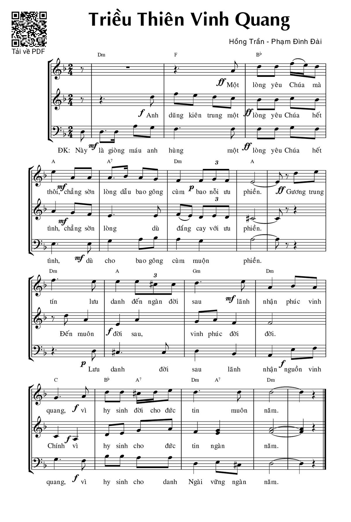Sheet Triều thiên vinh quang PDF (Phạm Đình Đài), hợp âm