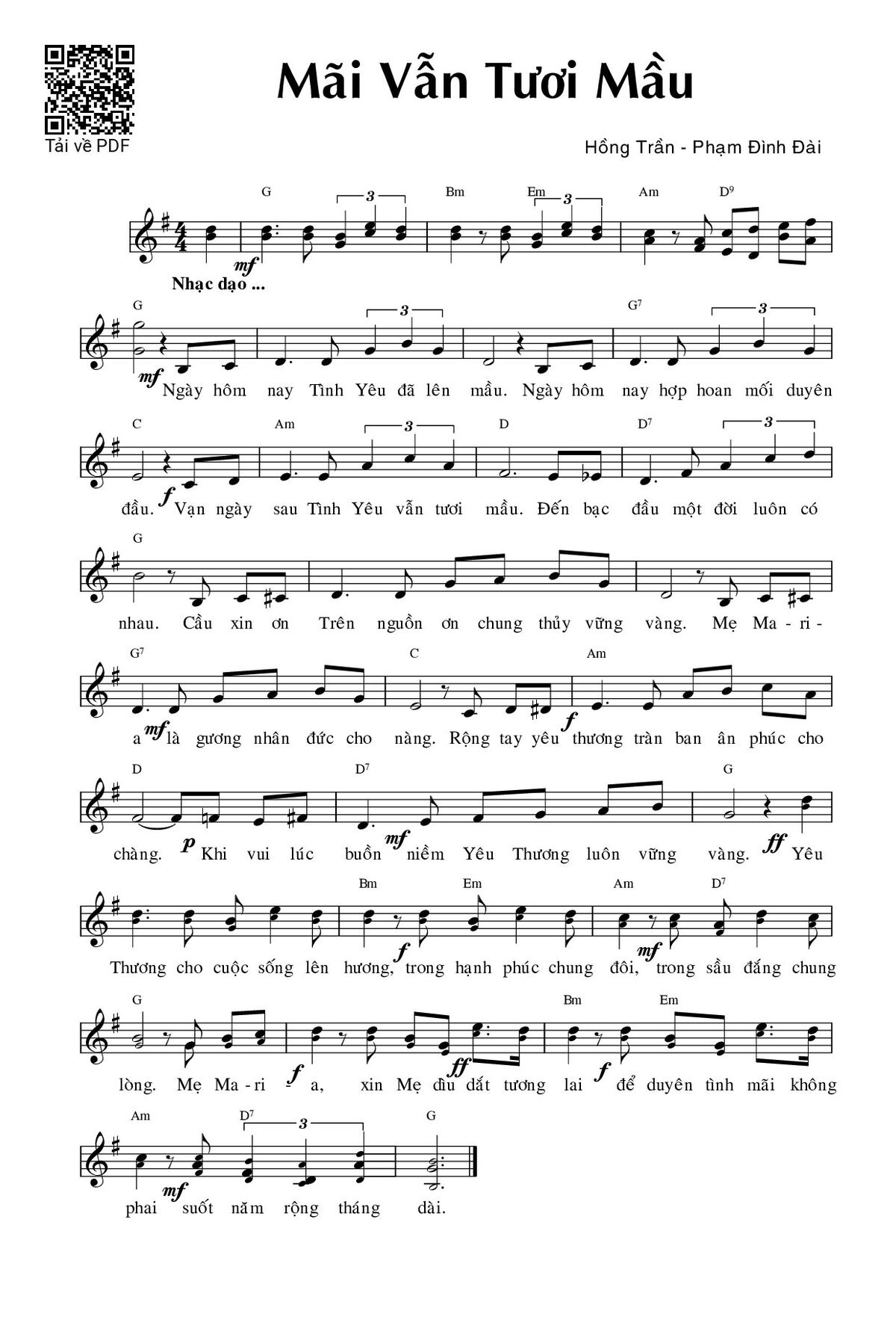 Trang 1 của Sheet nhạc PDF bài hát Mãi vẫn tươi màu - Phạm Đình Đài