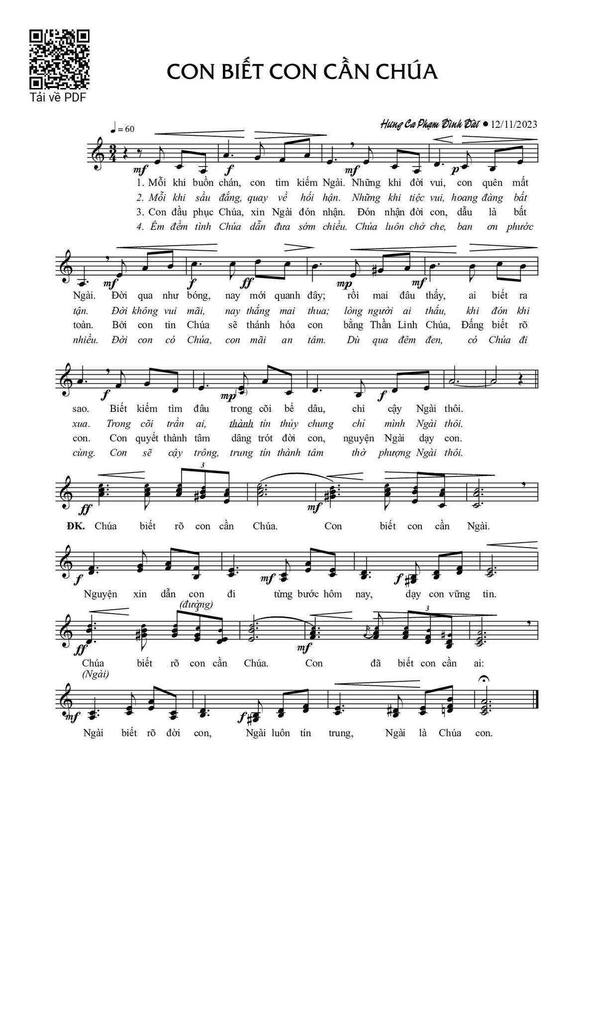 Trang 1 của Sheet nhạc PDF bài hát Con biết con cần Chúa - Phạm Đình Đài