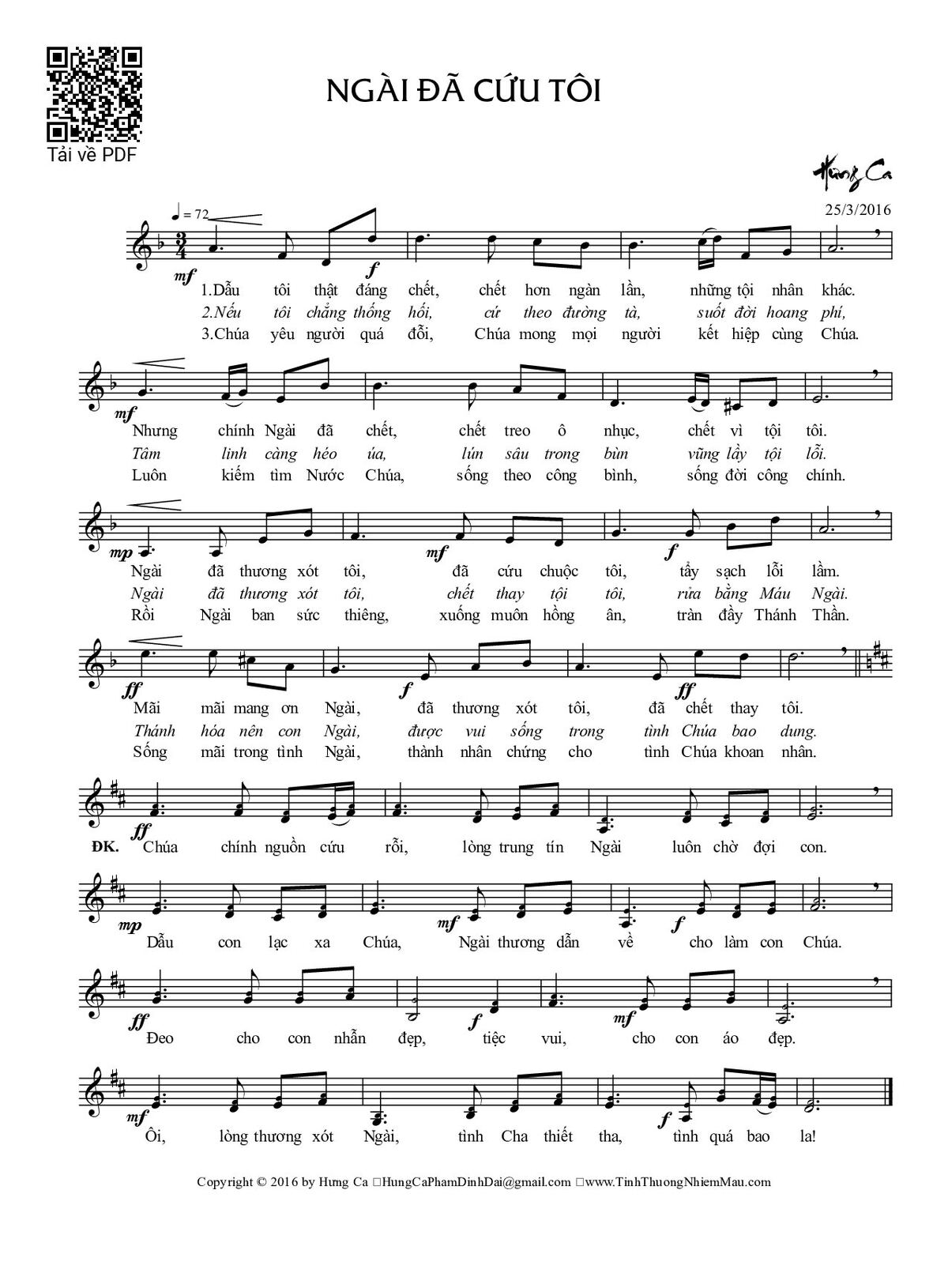 Trang 1 của Sheet nhạc PDF bài hát Ngài đã cưu tôi - Phạm Đình Đài
