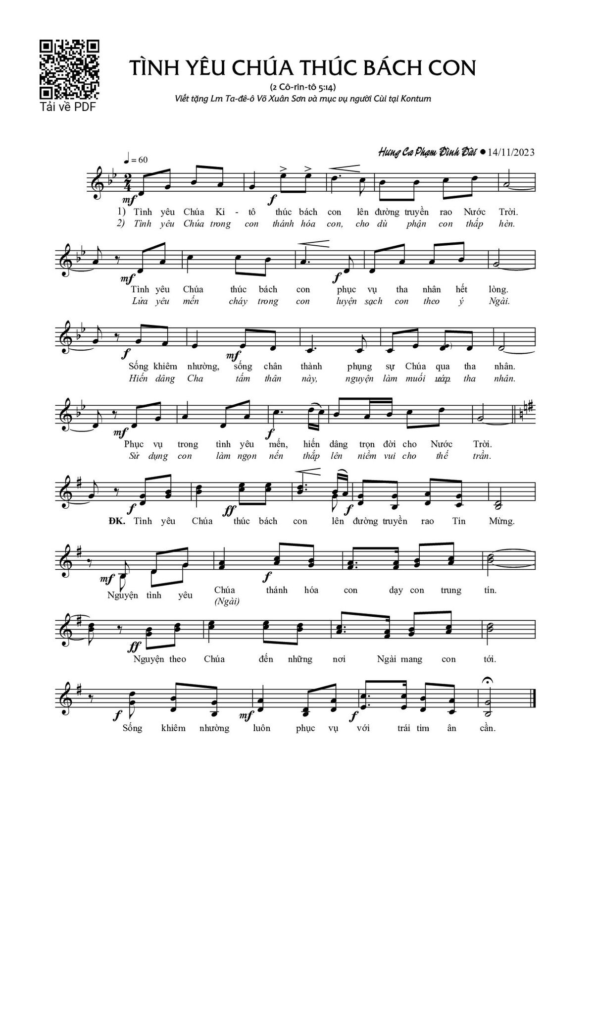 Trang 1 của Sheet nhạc PDF bài hát Tình yêu Chúa thúc bách con - Phạm Đình Đài