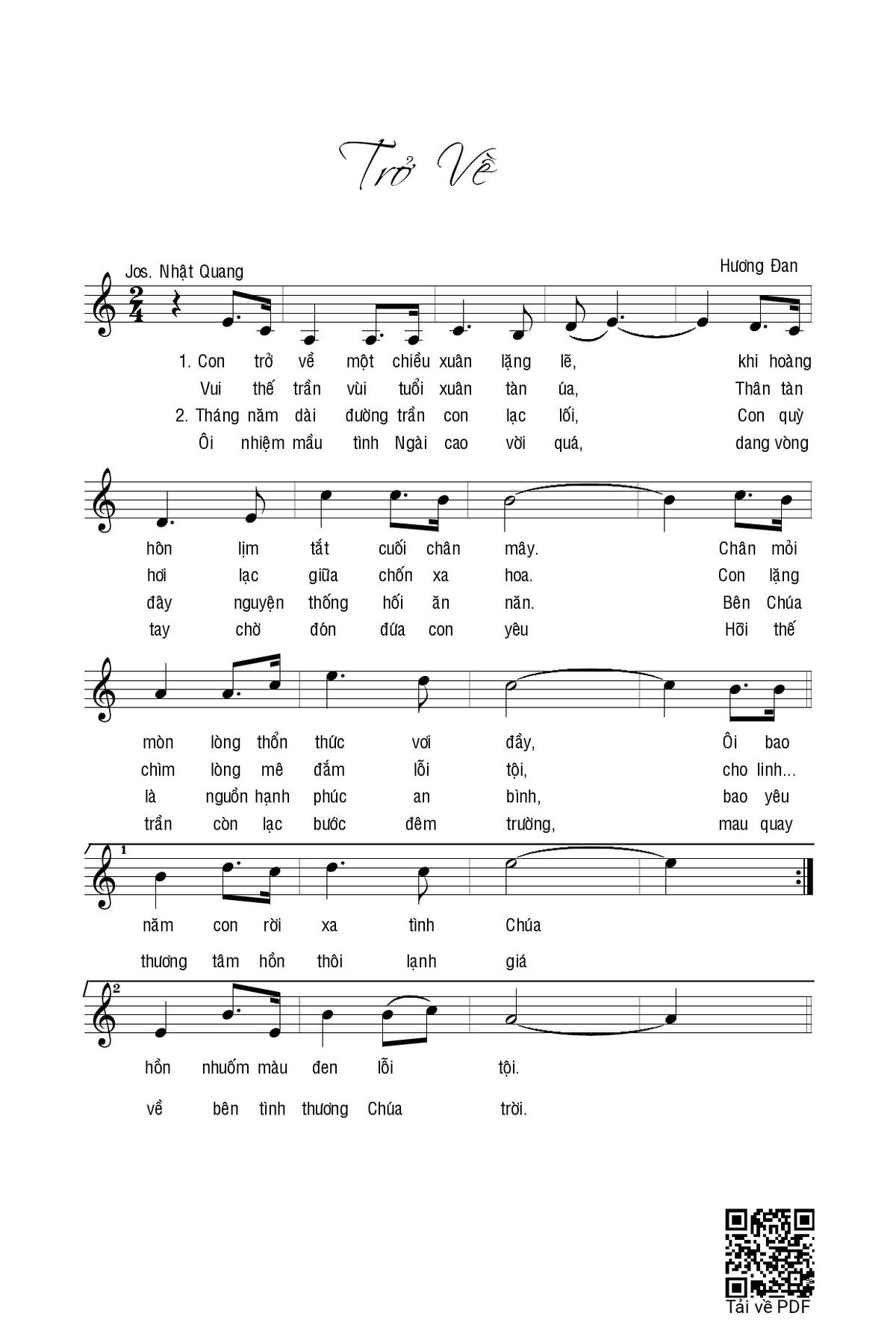 Sheet Trở về PDF (Hương Đan), hợp âm