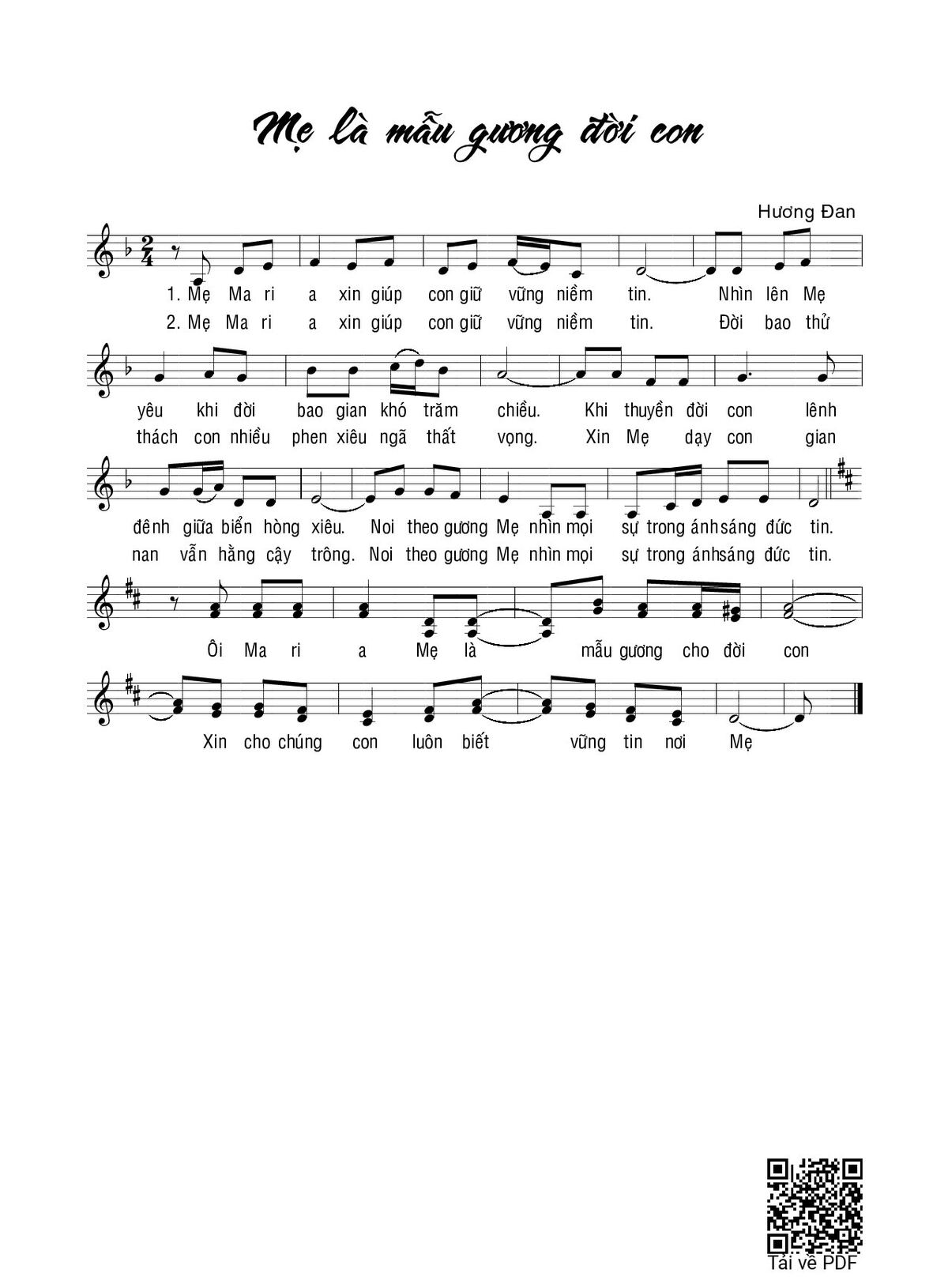 Trang 1 của Sheet nhạc PDF bài hát Mẹ là mẫu gương đời con - Hương Đan