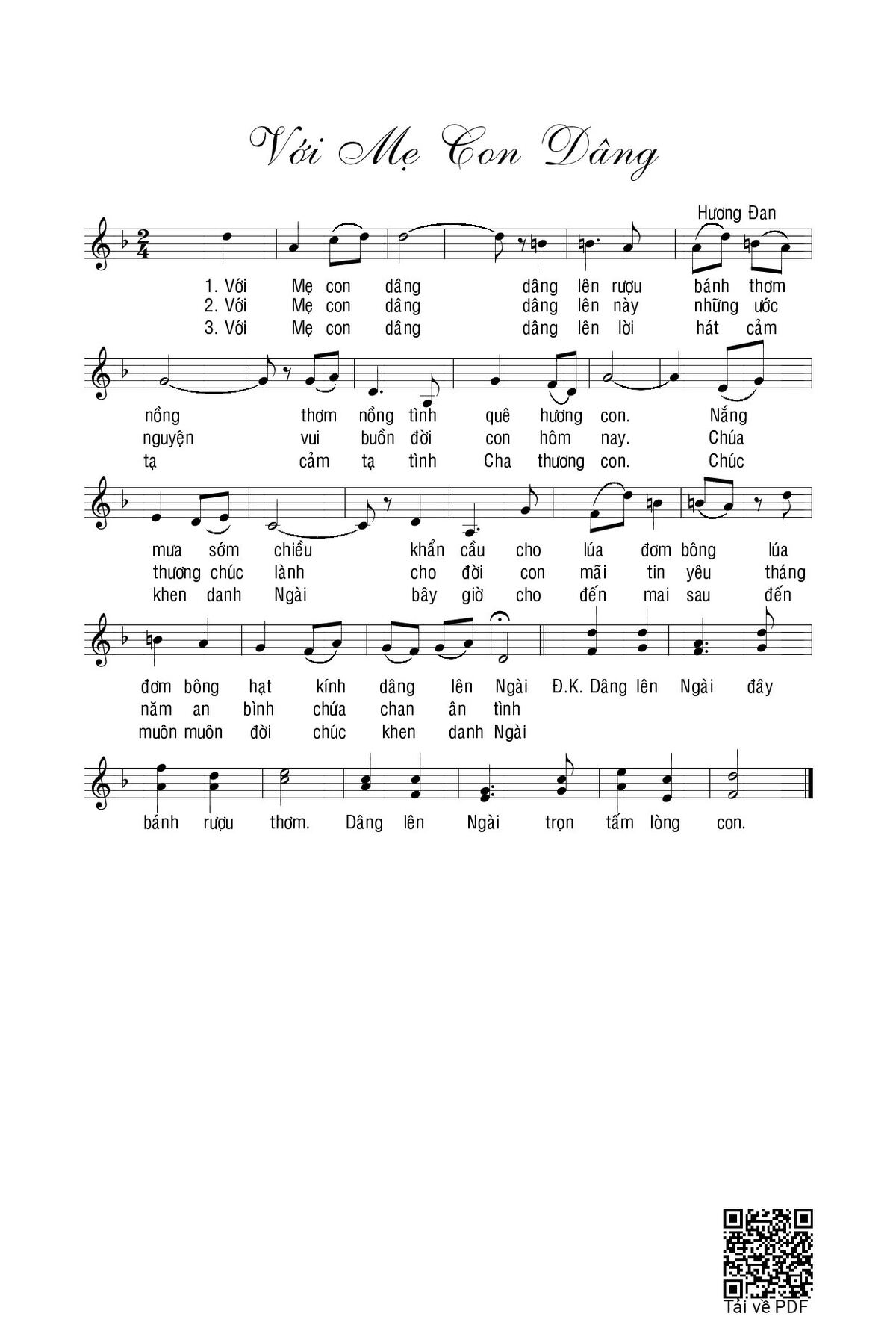 Trang 1 của Sheet nhạc PDF bài hát Với Mẹ con dâng - Hương Đan