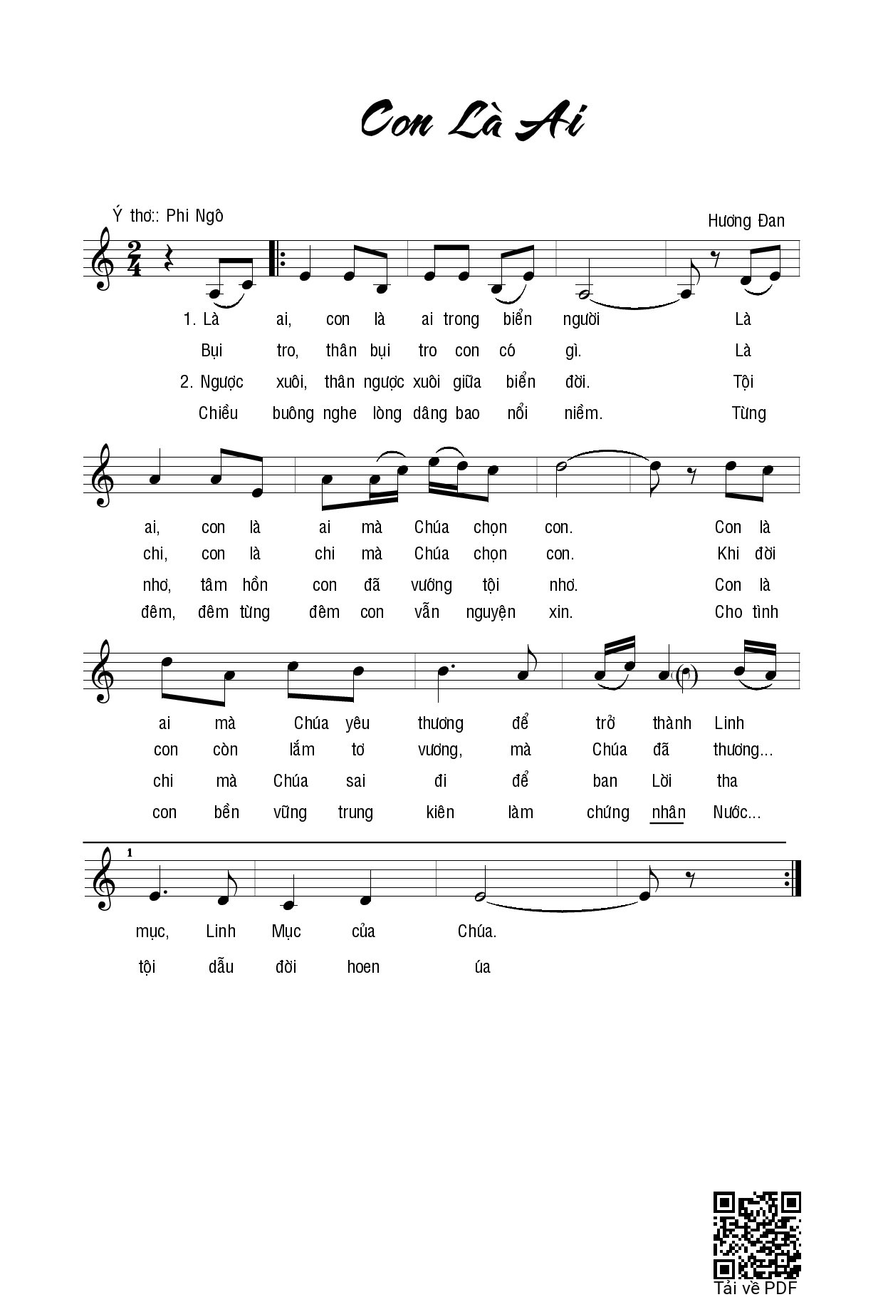 Trang 1 của Sheet nhạc PDF bài hát Con là ai - Hương Đan