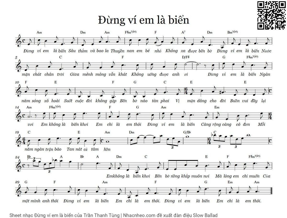 Trần Thanh Tùng Đừng ví em là biển Sâu thẳm và bao la [PDF] [Sheet] [Lời H.A] [Mp4/Midi]