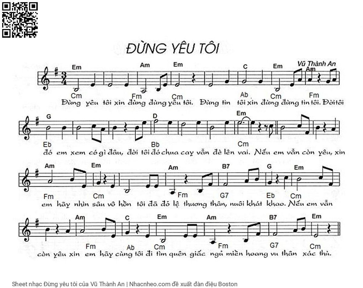 Chọn nút dấu + để tăng tông lên nửa cung, nút dấu - để giảm tông xuống nửa cung. Rê chuột vào hợp âm để xem các thế bấm hợp âm của bài hát Đừng yêu tôi.