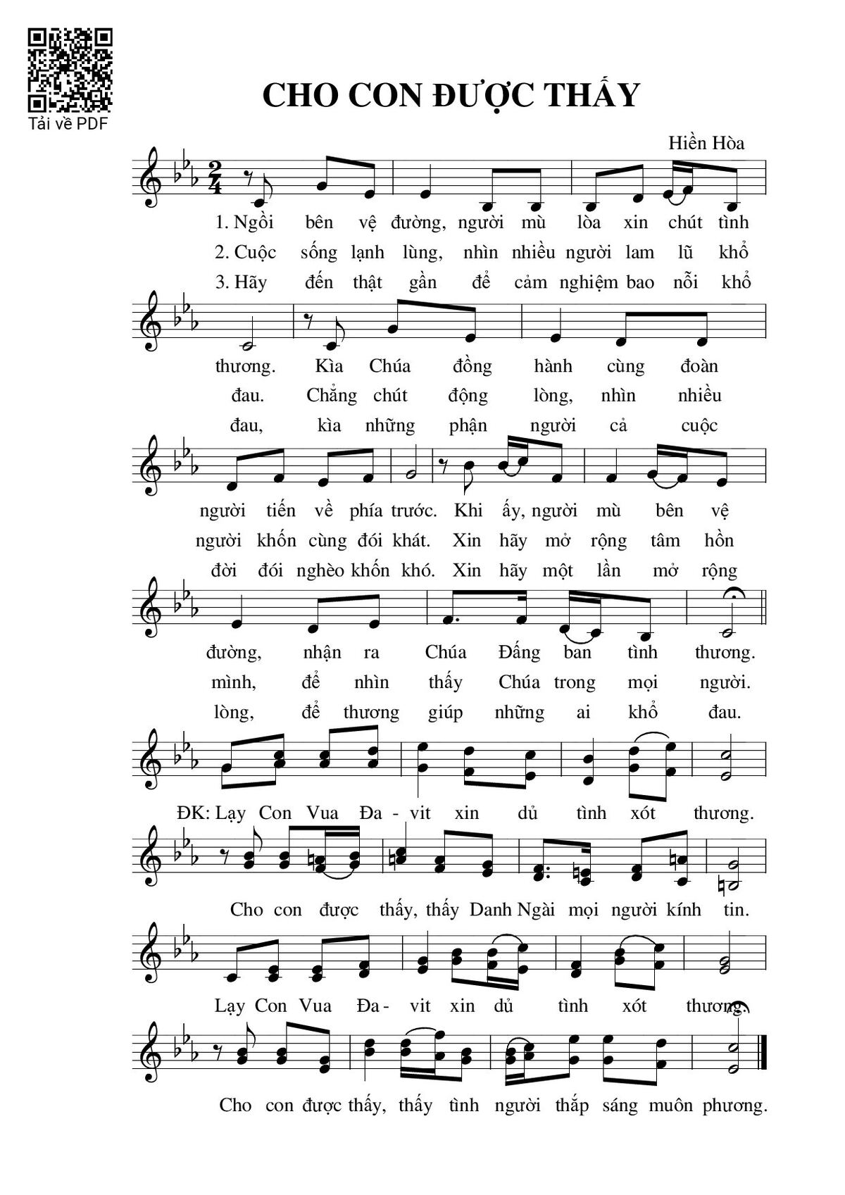 Trang 1 của Sheet nhạc PDF bài hát Cho con được thấy - Hiền Hòa