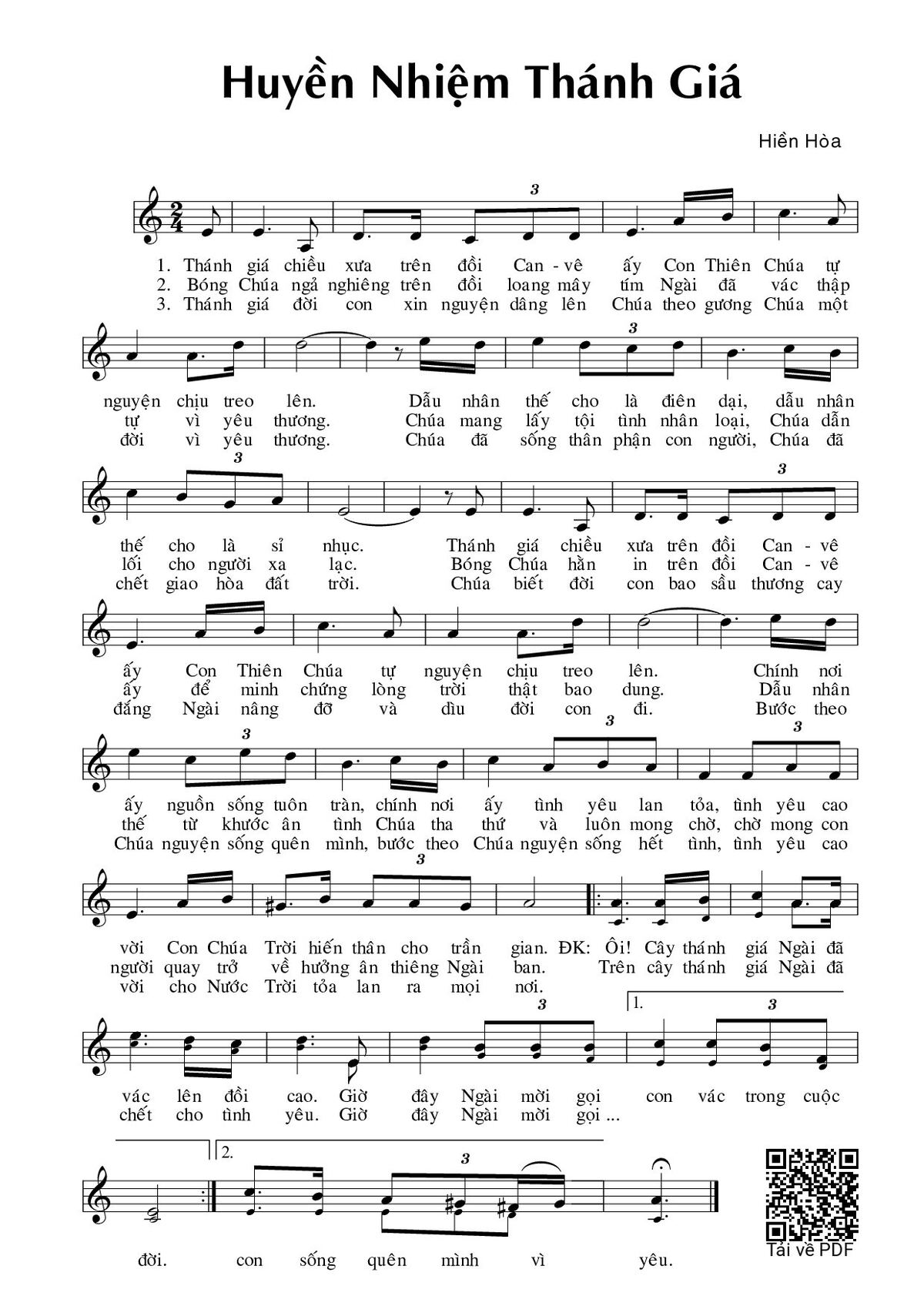Sheet nhạc có nốt Huyền nhiệm Thánh Giá của nhạc sĩ Hiền Hòa và file PDF nốt nhạc đăng lên đây nhằm giúp các bạn xướng âm cho đúng nốt và hát thêm hay, chỉ mang tính chất tham khảo, không có mục đích thương mại. Bản quyền thuộc về tác giả và tổ chức nắm bản quyền, Truongca.com không giữ bất kỳ bản quyền của nội dung nào cả. Các bạn có thể tải về bản PDF chất lượng cao, gồm khuông nhạc có nốt với đường link file PDF bên trên.