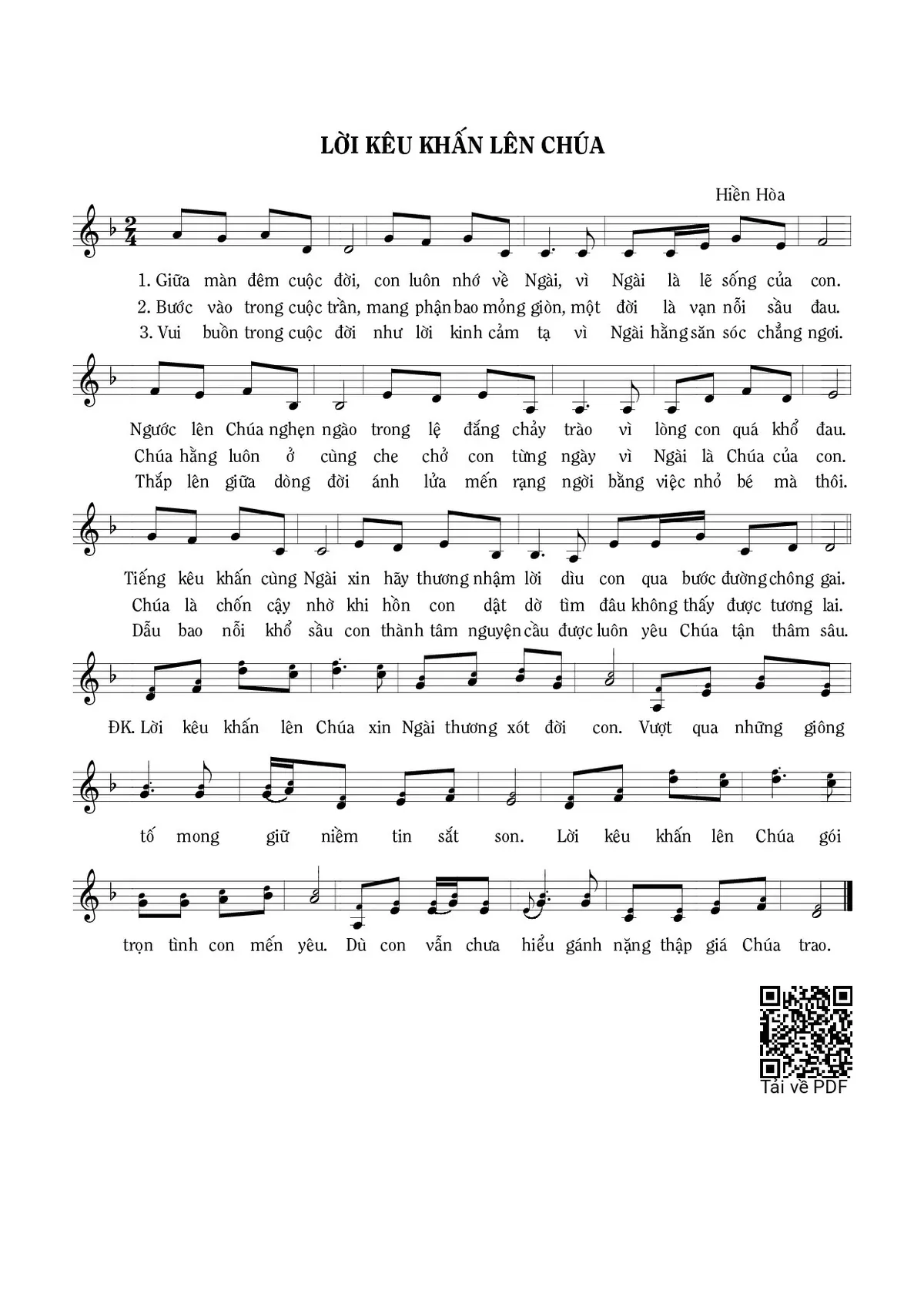 Trang 1 của Sheet nhạc PDF bài hát Lời kêu khấn lên Chúa - Hiền Hòa