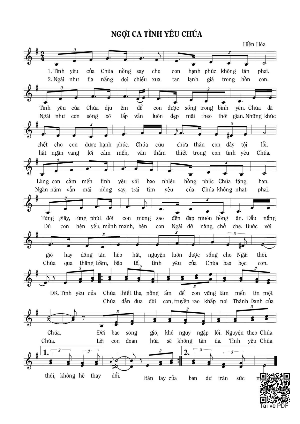 Sheet Ngợi ca tình yêu Chúa PDF (Hiền Hòa), hợp âm