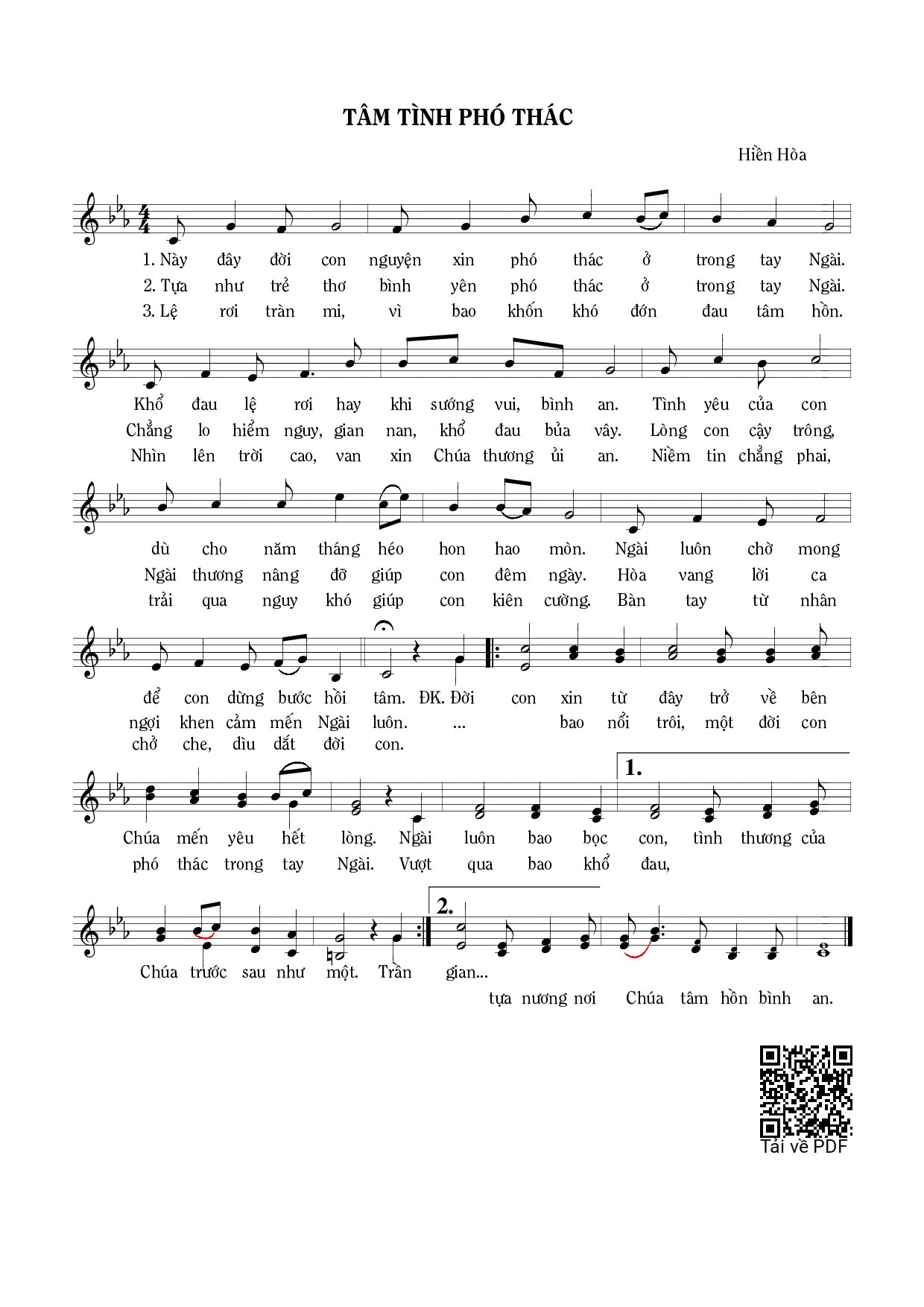 Trang 1 của Sheet nhạc PDF bài hát Tâm tình phó thác - Hiền Hòa
