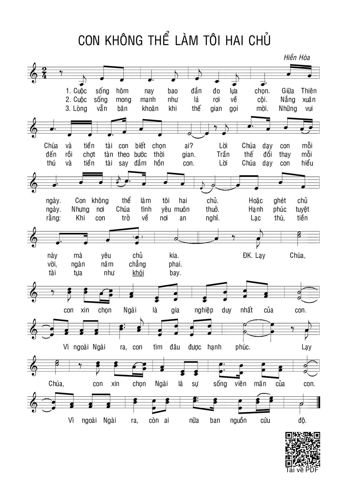 Trang 1 của Sheet nhạc PDF bài hát Con không thể làm tôi hai chủ (Mt. 6) - Hiền Hòa