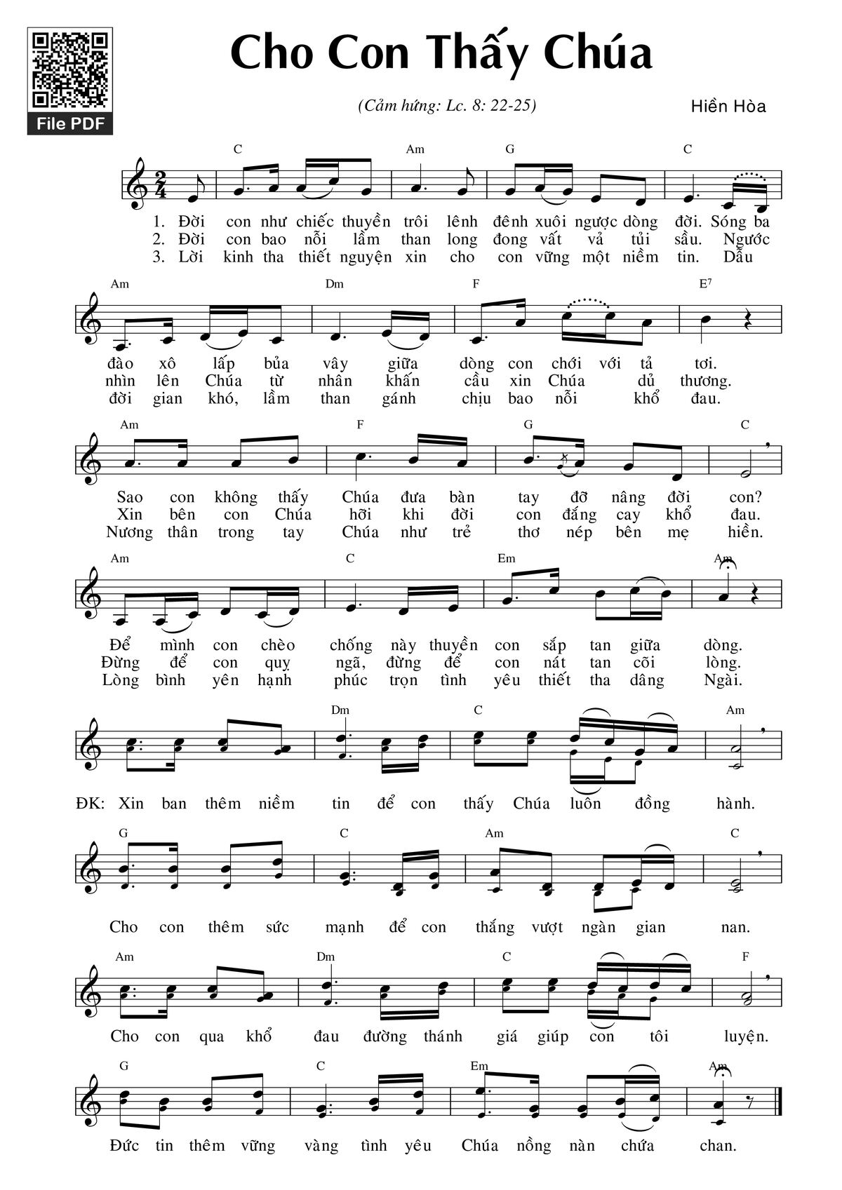 Trang 1 của Sheet nhạc PDF bài hát Cho con thấy Chúa (Lc. 8) - Hiền Hòa