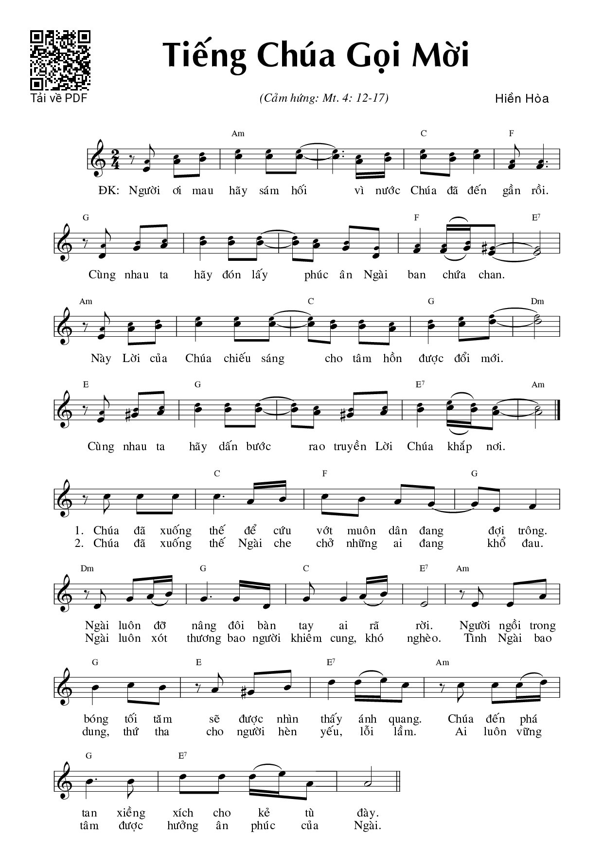Trang 1 của Sheet nhạc PDF bài hát Tiếng Chúa gọi mời (Mt. 4) - Hiền Hòa