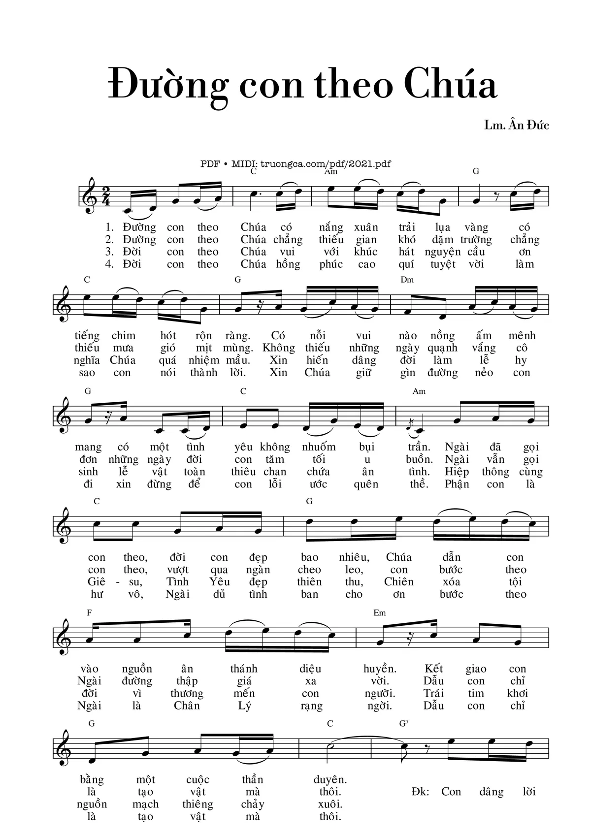 Lm. Ân Đức Đường con theo Chúa có nắng xuân trải lụa vàng [PDF] [Sheet] [Lời H.A] [Mp4/Midi] [Lời bình - giai thoại]
