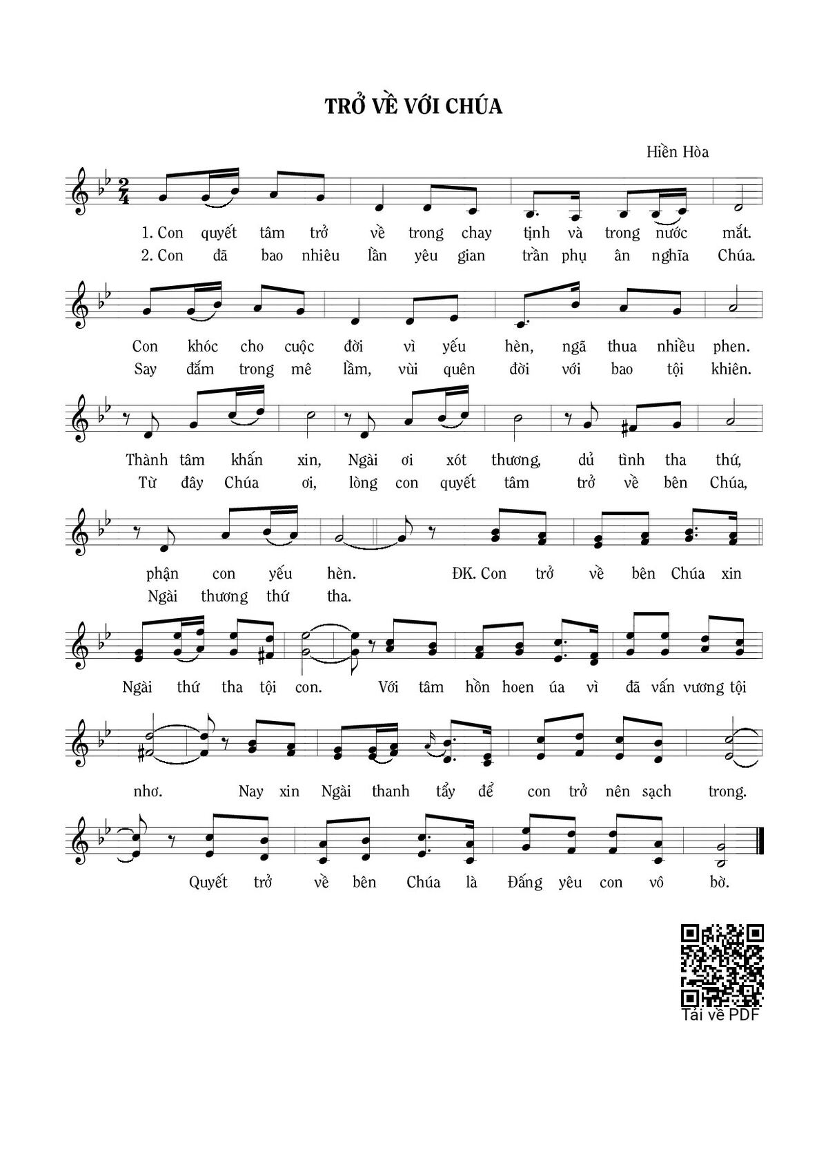 Trang 1 của Sheet nhạc PDF bài hát Trở về với Chúa - Hiền Hòa
