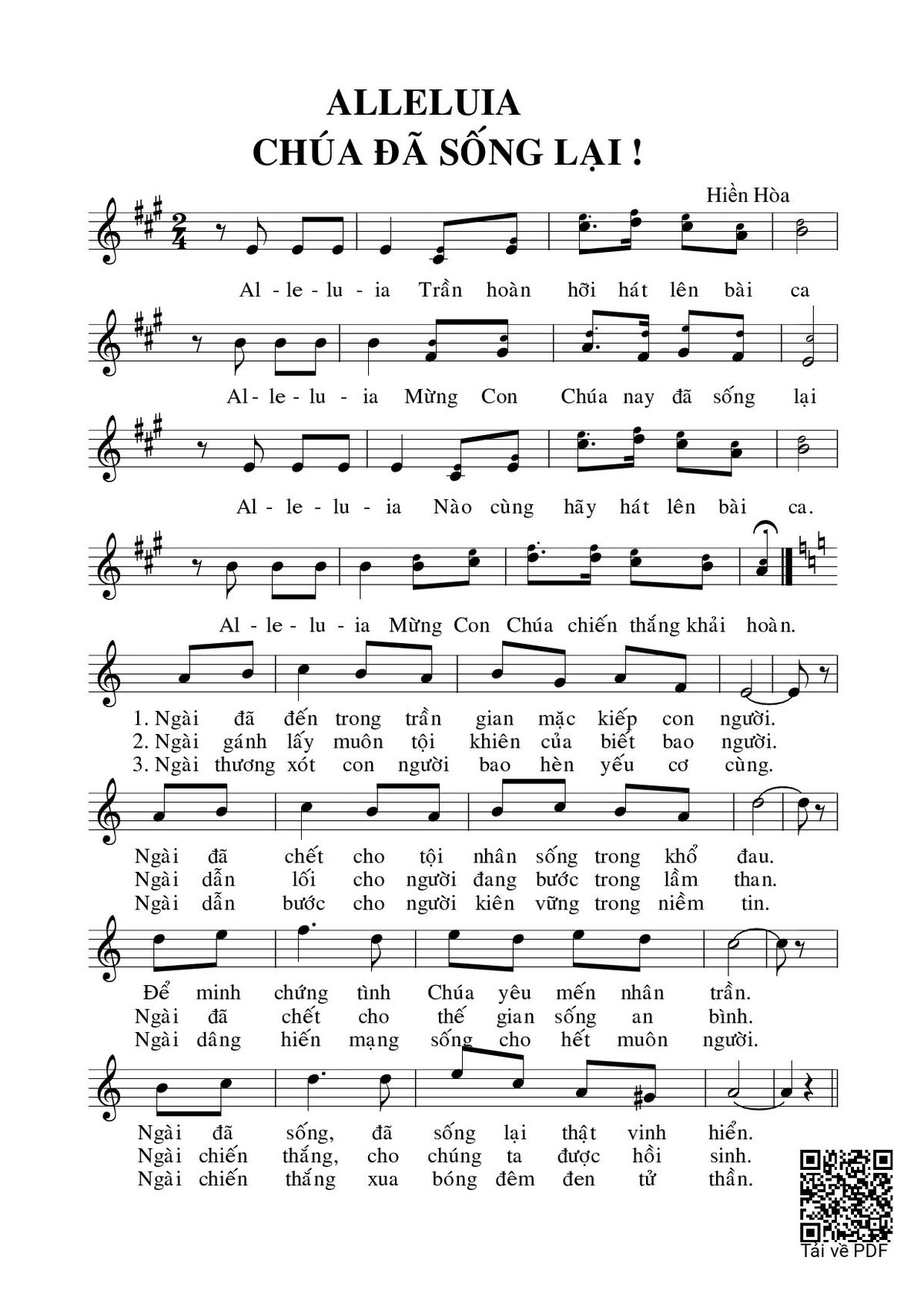 Trang 1 của Sheet nhạc PDF bài hát Alleluia Chúa đã sống lại - Hiền Hòa