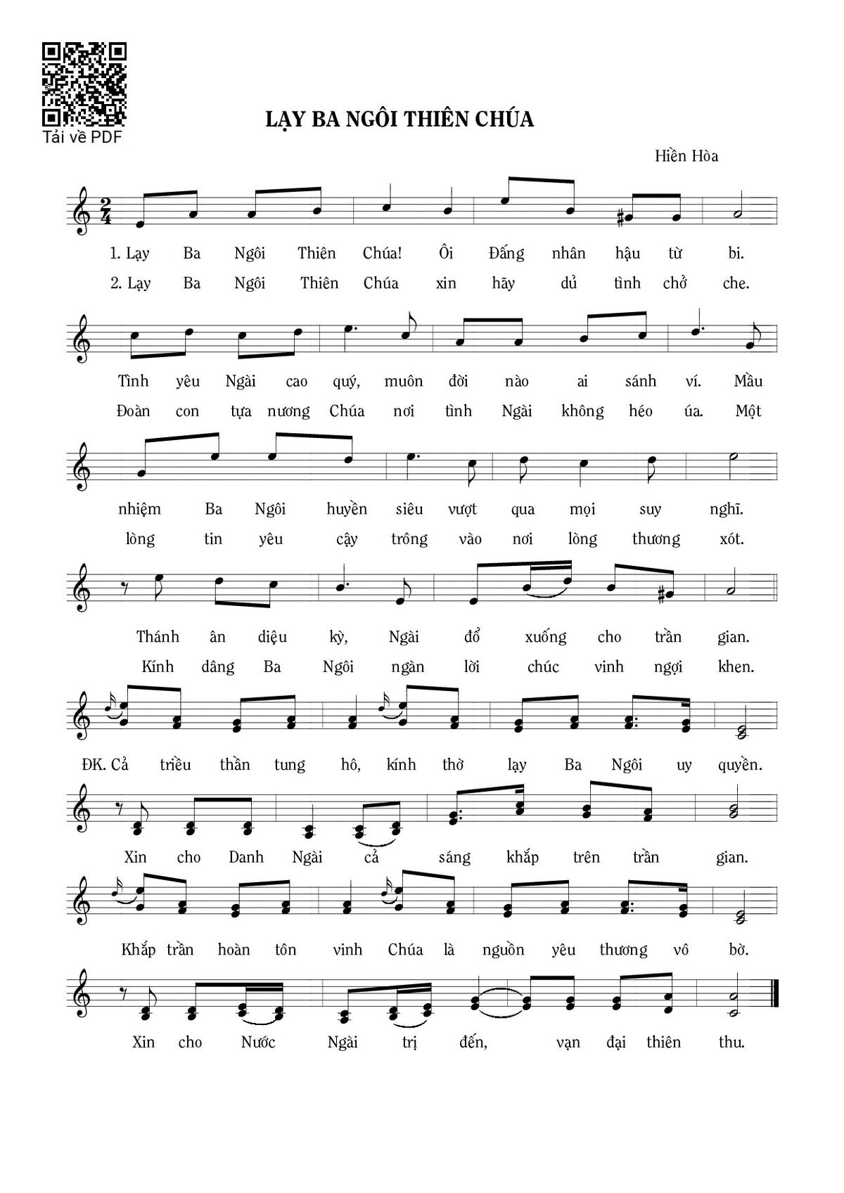 Trang 1 của Sheet nhạc PDF bài hát Lạy Ba Ngôi Thiên Chúa - Hiền Hòa
