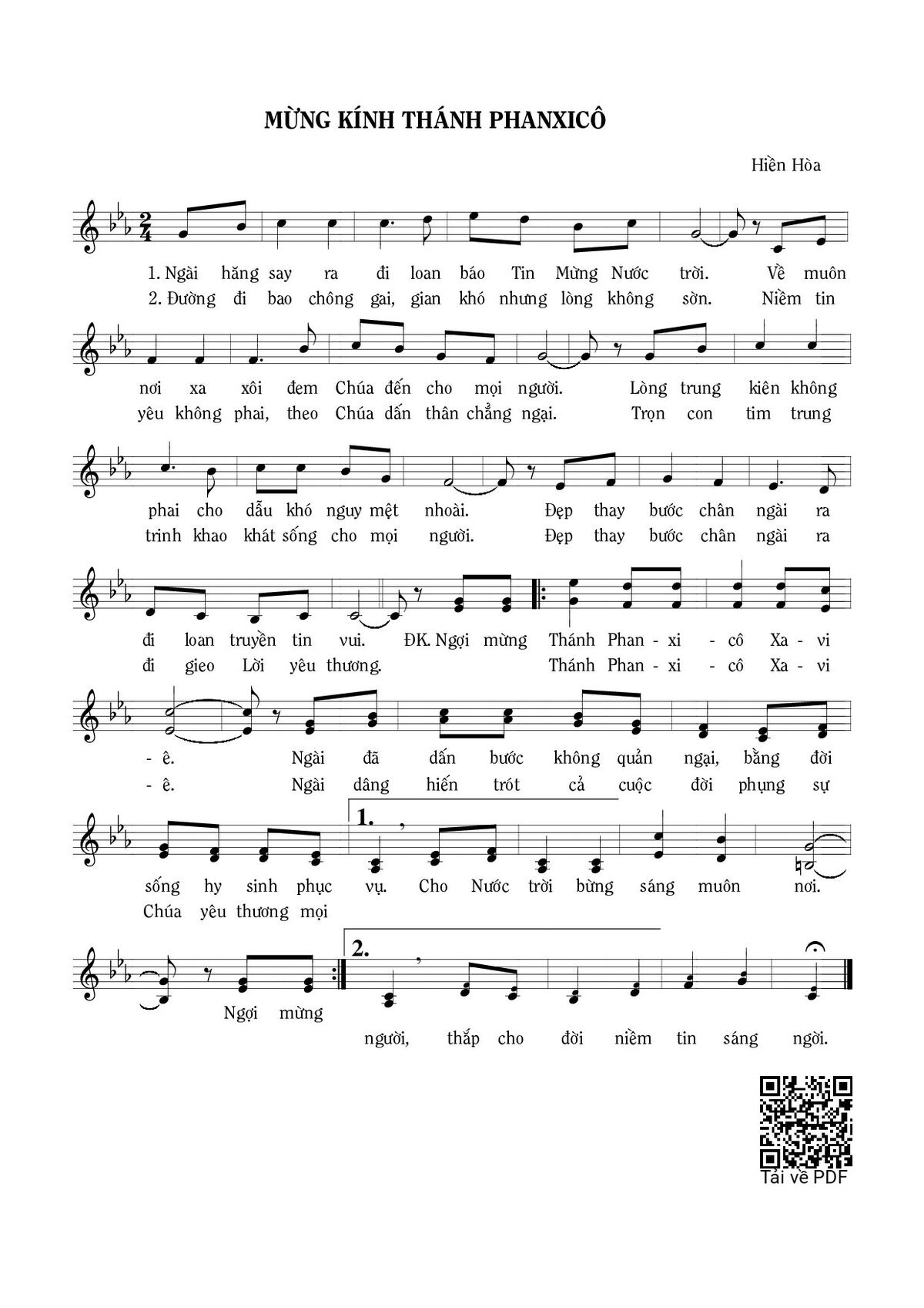 Trang 1 của Sheet nhạc PDF bài hát Mừng kính Thánh Phanxicô - Hiền Hòa