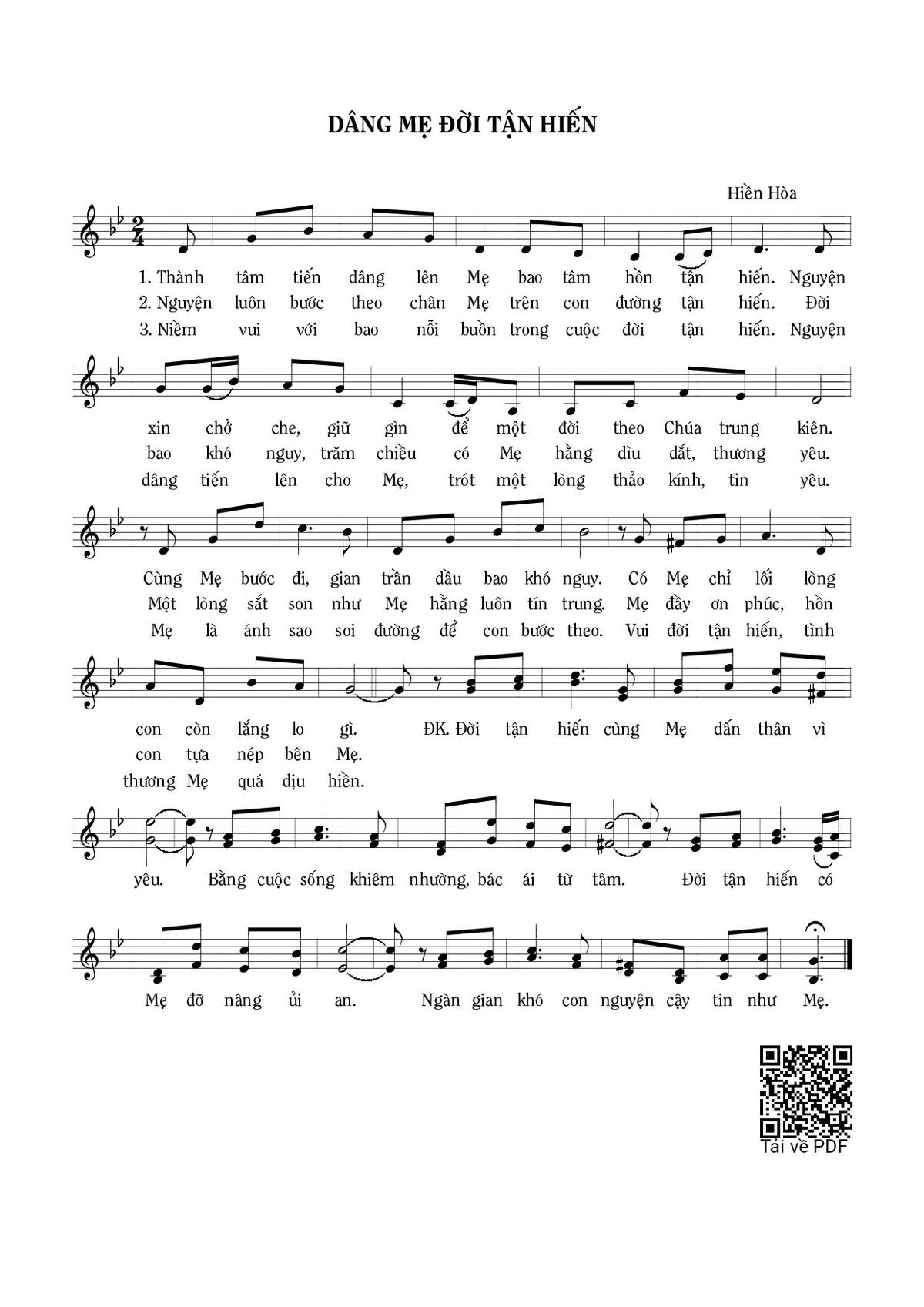 Sheet Dâng Mẹ đời tận hiến PDF, hợp âm