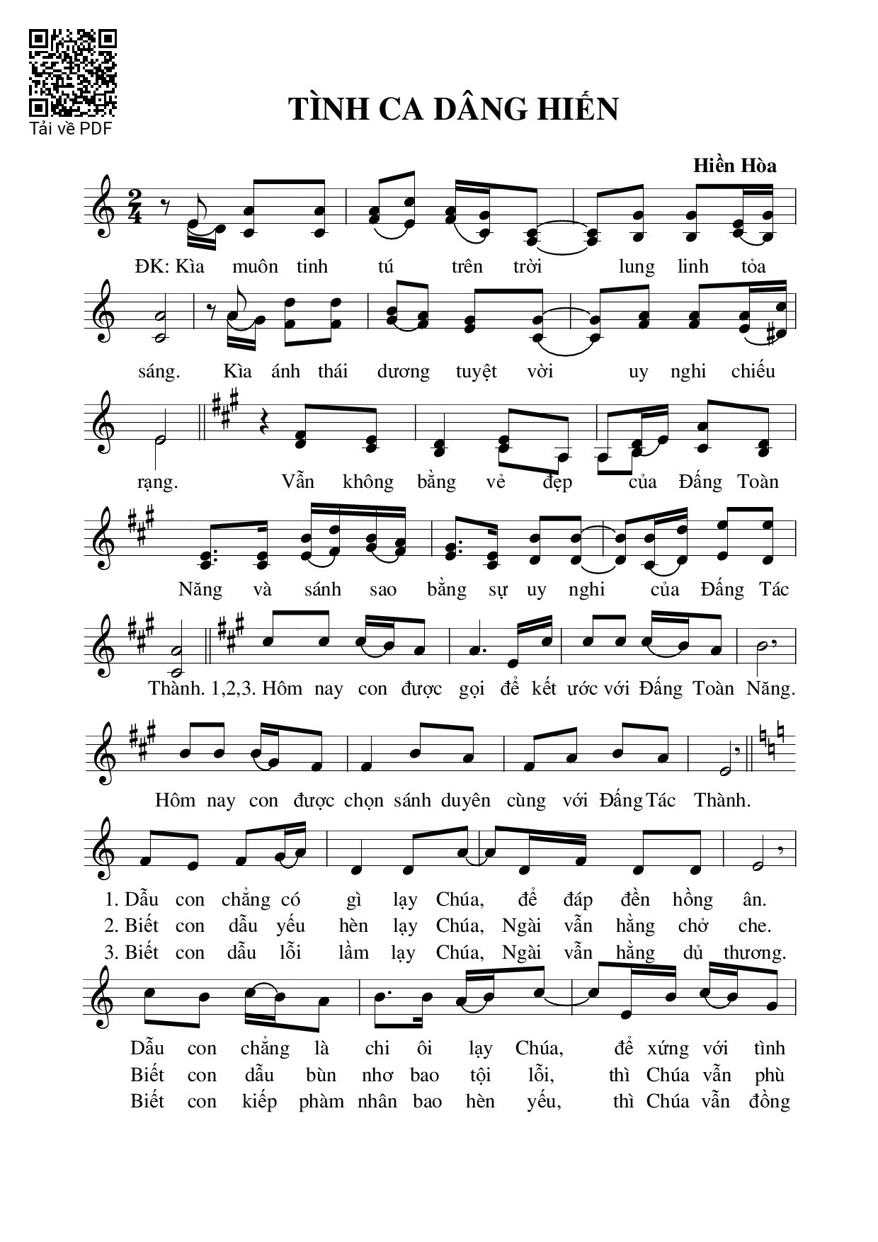 Sheet Tình ca dâng hiến PDF (Hiền Hòa), hợp âm