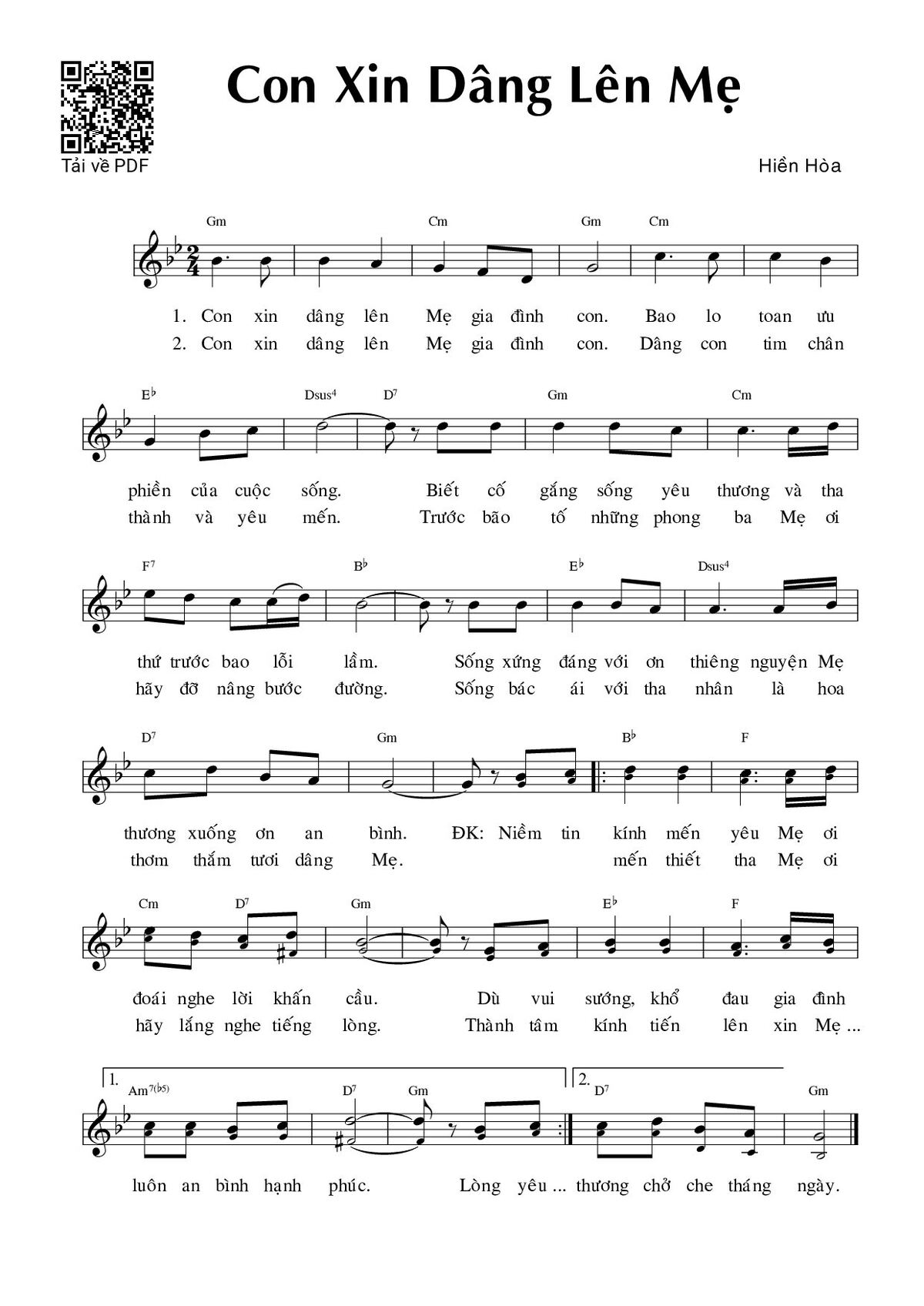 Trang 1 của Sheet nhạc PDF bài hát Con xin dâng lên Mẹ - Hiền Hòa