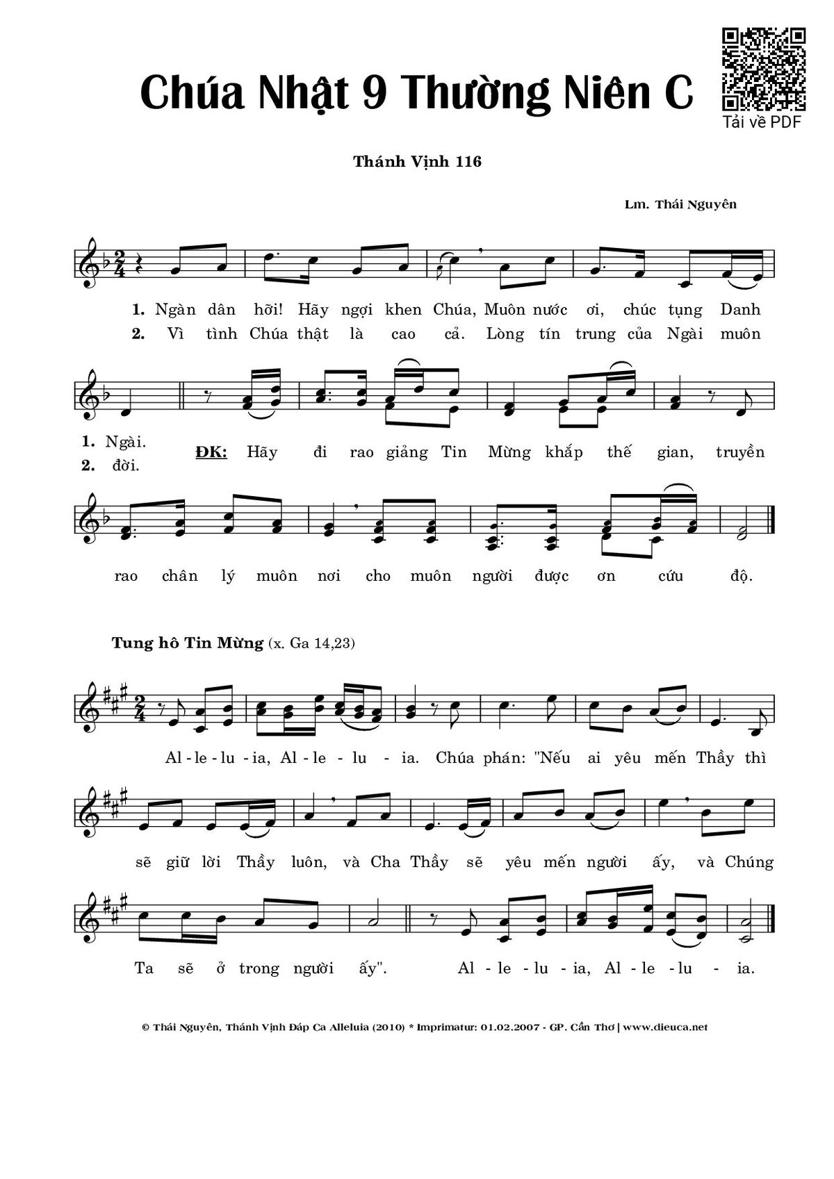 🌾 Imprimatur, Thông tin chuẩn nhận dùng trong phụng vụ Công Giáo: Thánh Vịnh – Đáp Ca. Imprimatur – Gp. Nha Trang: 24.01.2003