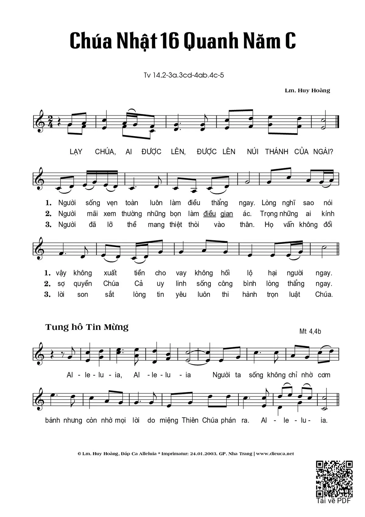 Thể loại 🌾 Nhạc Thánh Ca, 🌾 Thánh Vịnh - Đáp Ca, 🌾 Thánh ca Imprimatur, 🌾 Thánh Vịnh 14, ⛪ Chúa Nhật 16 Thường Niên C