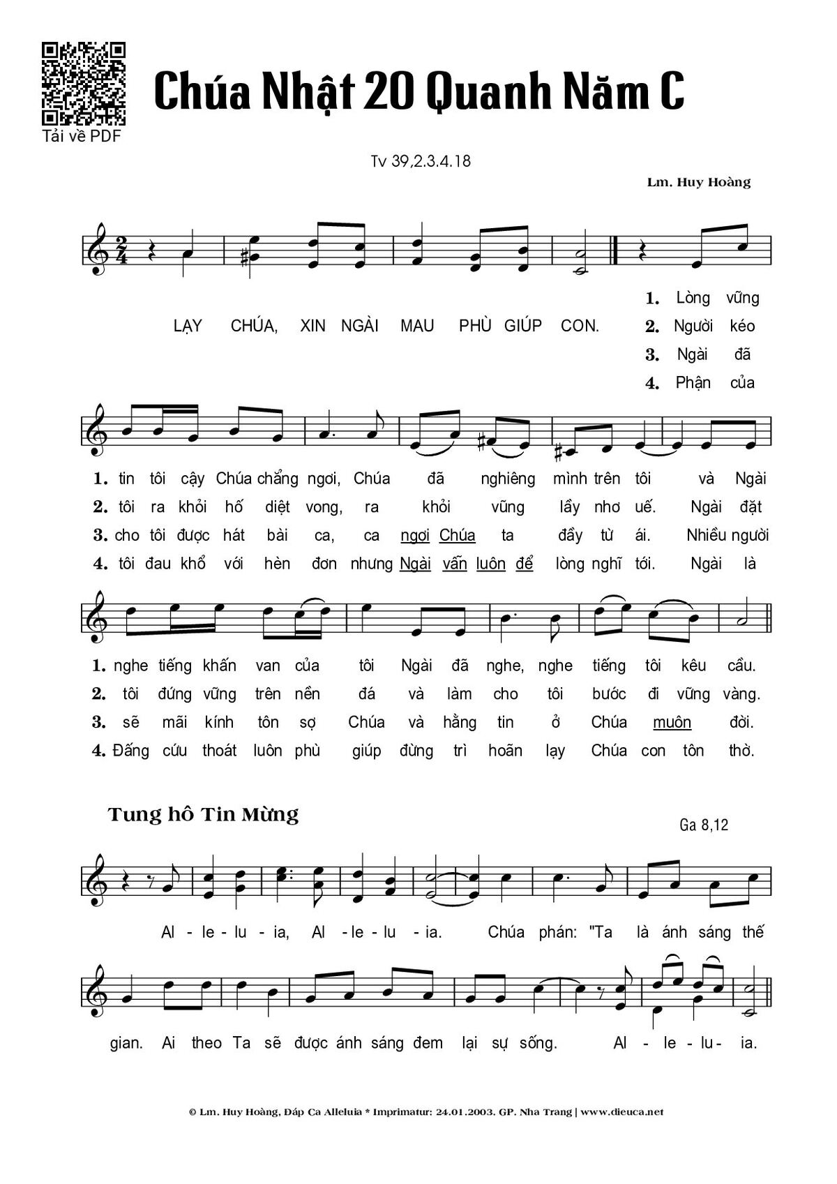 Thể loại 🌾 Nhạc Thánh Ca, 🌾 Thánh Vịnh - Đáp Ca, 🌾 Thánh ca Imprimatur, 🌾 Thánh Vịnh 39, ⛪ Chúa Nhật 20 Thường Niên C