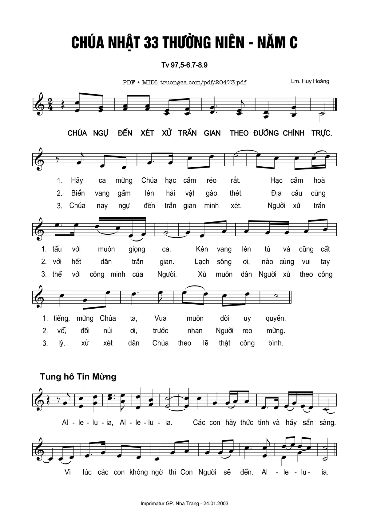 🌾 Imprimatur, Thông tin chuẩn nhận dùng trong phụng vụ Công Giáo: Thánh Vịnh – Đáp Ca. Imprimatur – Gp. Nha Trang: 24.01.2003