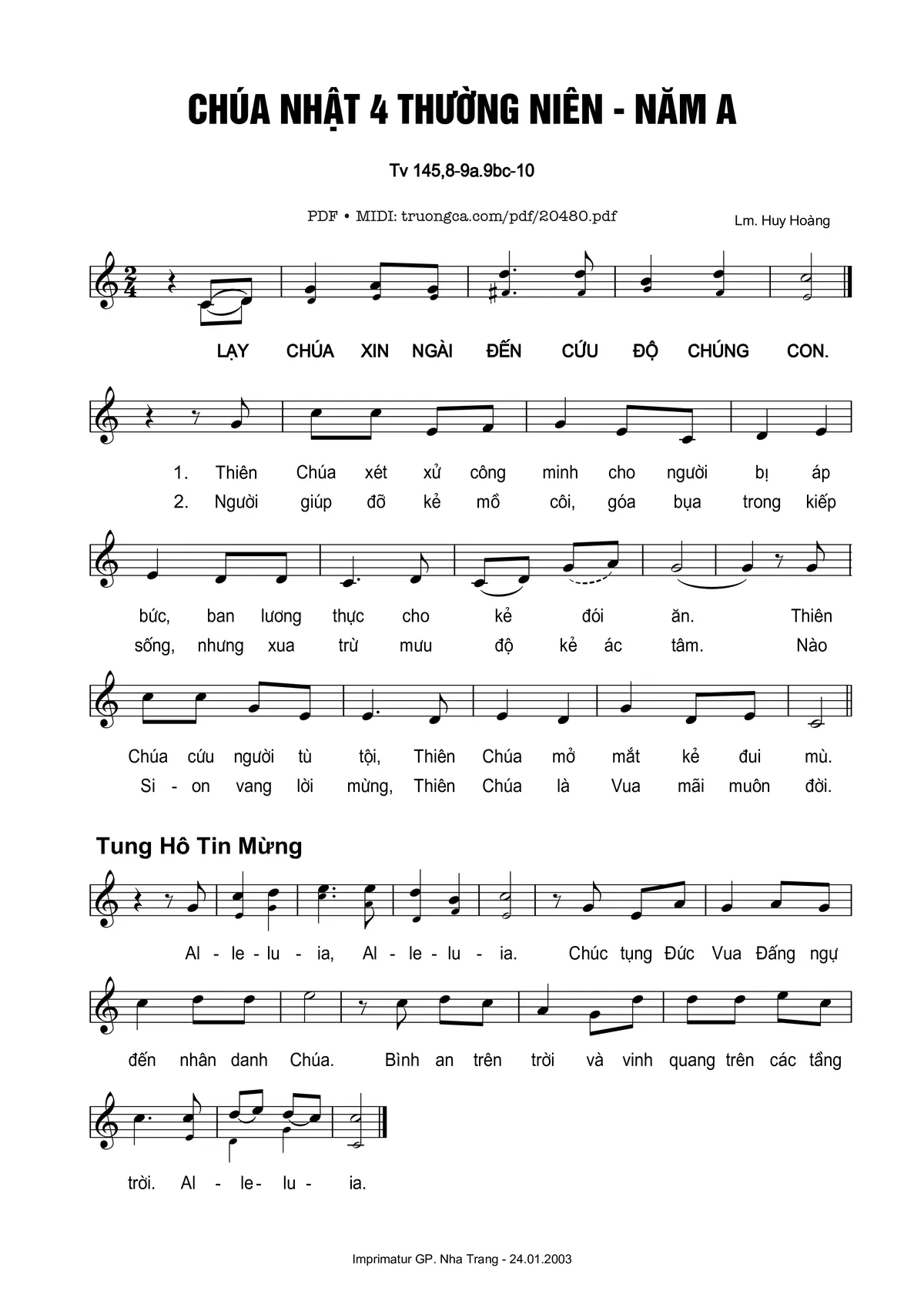 🌾 Imprimatur, Thông tin chuẩn nhận dùng trong phụng vụ Công Giáo: Thánh Vịnh – Đáp Ca. Imprimatur – Gp. Nha Trang: 24.01.2003