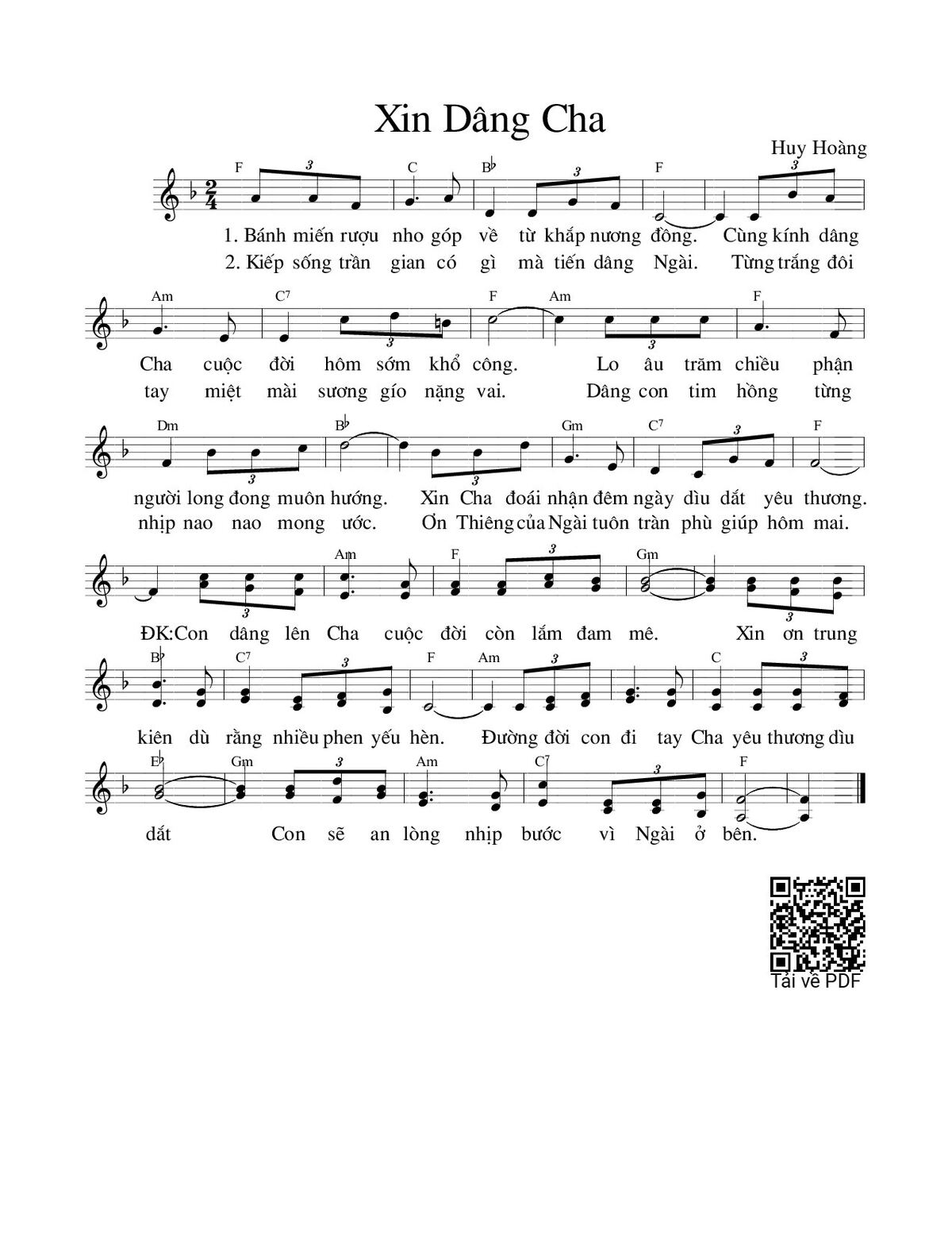 Sheet Xin dâng Cha PDF (Huy Hoàng), hợp âm