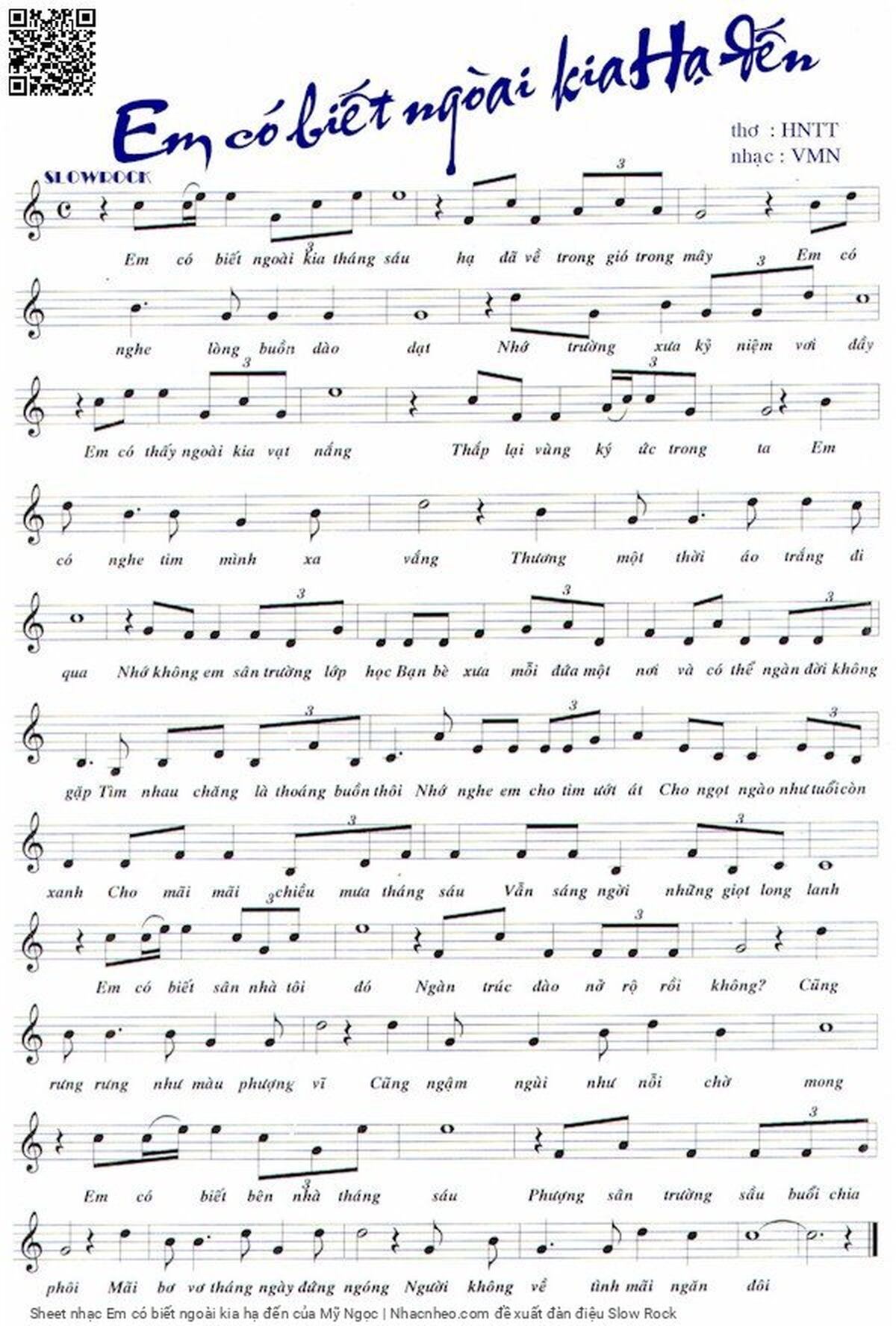 Mỹ Ngọc Em có biết ngoài kia tháng sáu Hạ đã về trong gió trong mây [PDF] [Sheet] [Lời H.A] [Mp4/Midi]