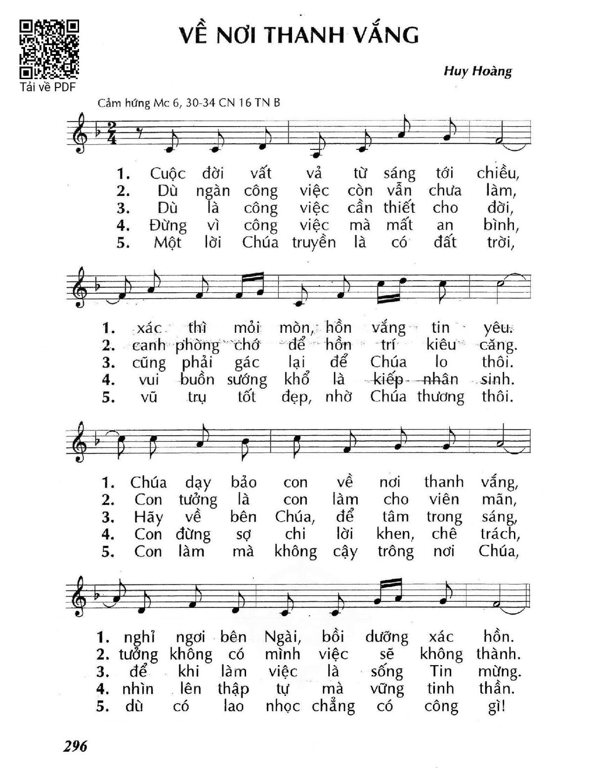 Trang 1 của Sheet nhạc PDF bài hát Về nơi thanh vắng (Mc. 6) - Huy Hoàng