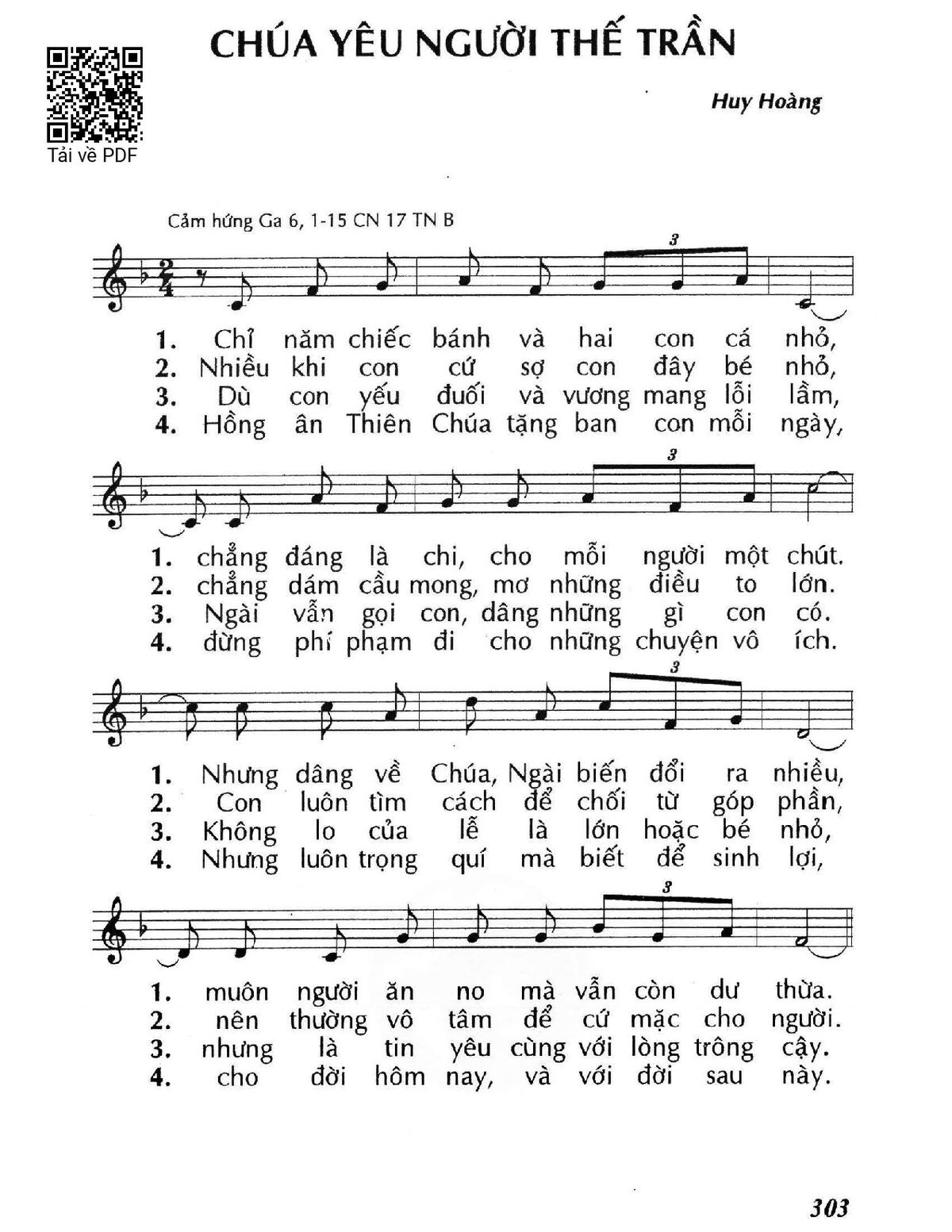 Trang 1 của Sheet nhạc PDF bài hát Chúa yêu người thế trần (Ga. 6) - Huy Hoàng