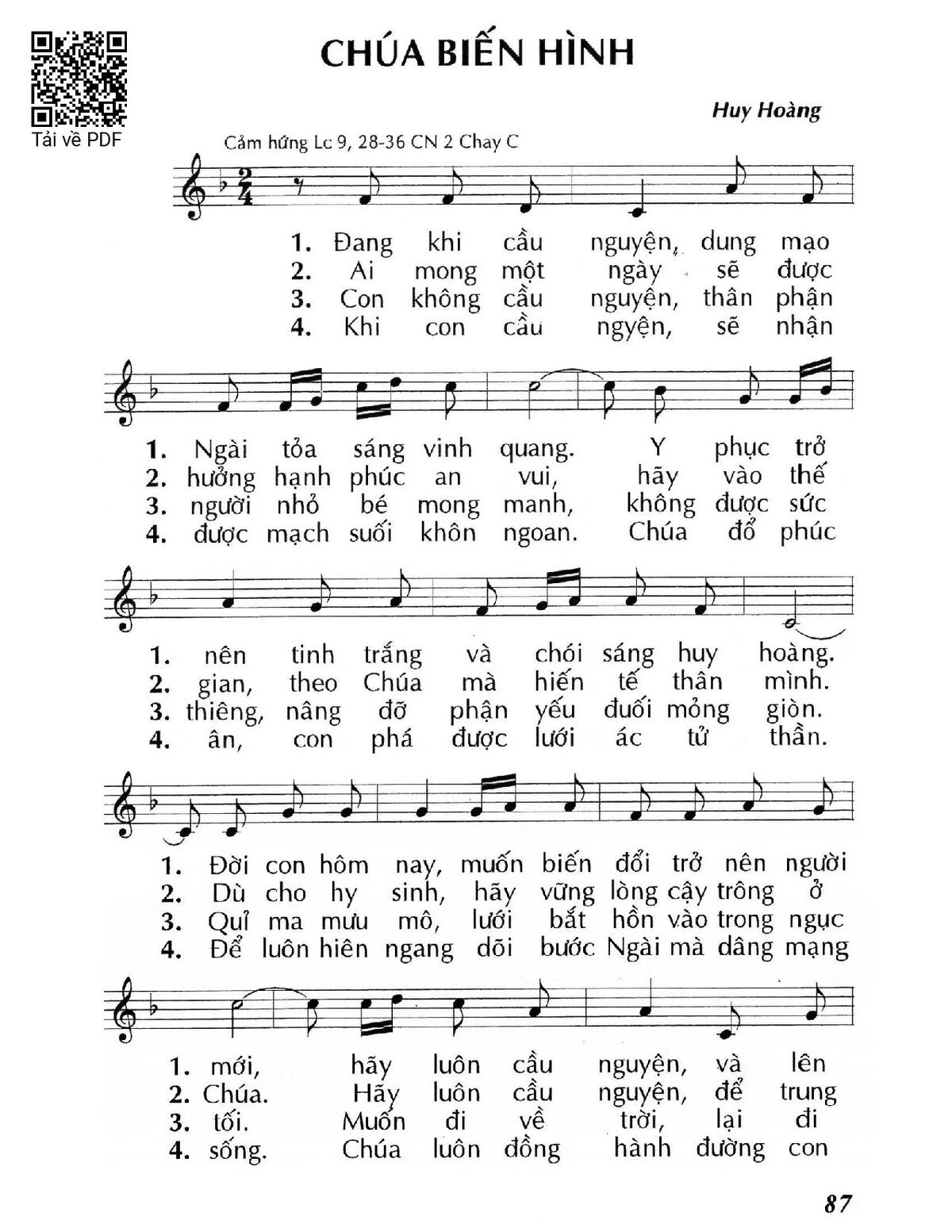 Trang 1 của Sheet nhạc PDF bài hát Chúa biến hình (Lc. 9) - Huy Hoàng