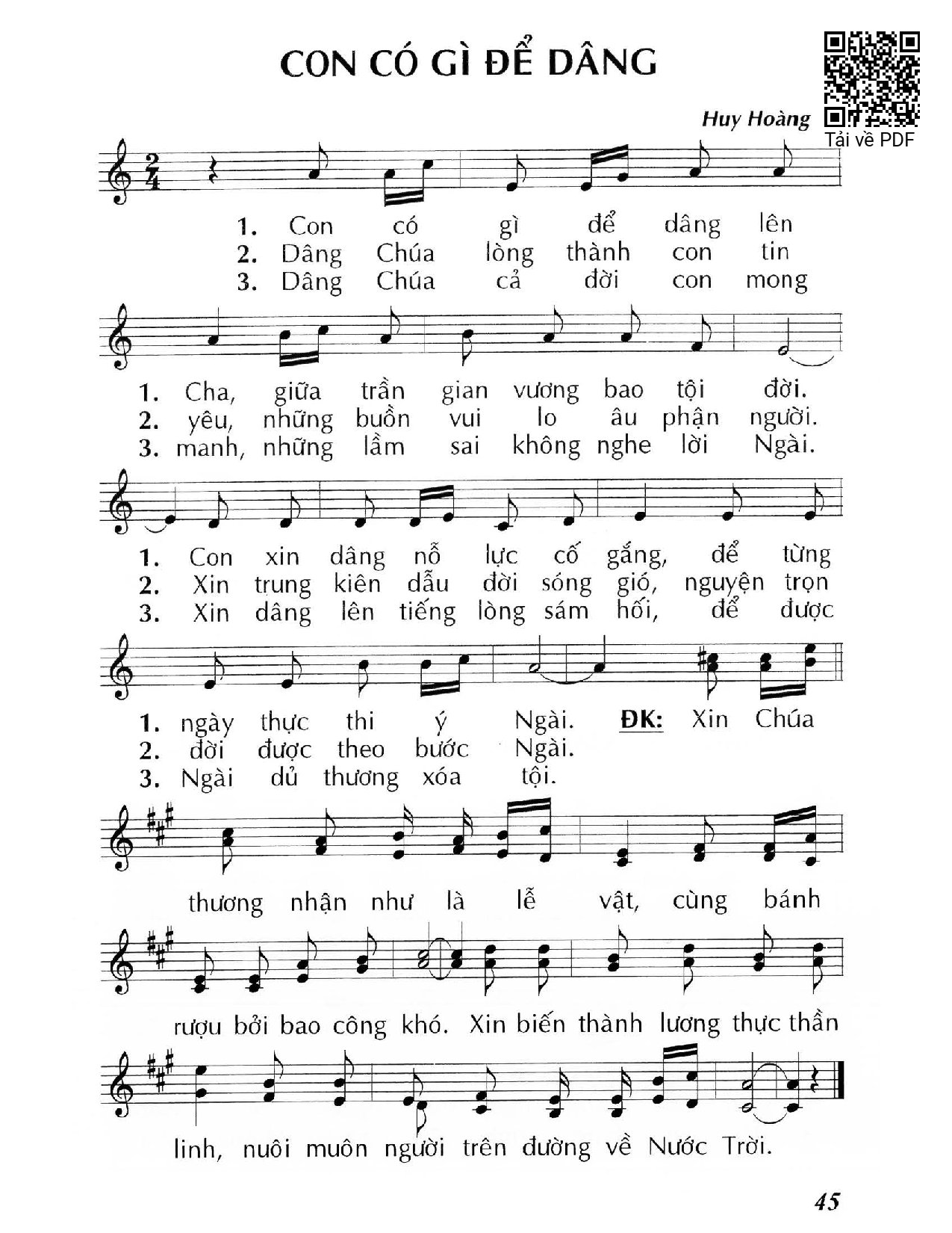Trang 1 của Sheet nhạc PDF bài hát Con có gì để dâng - Huy Hoàng