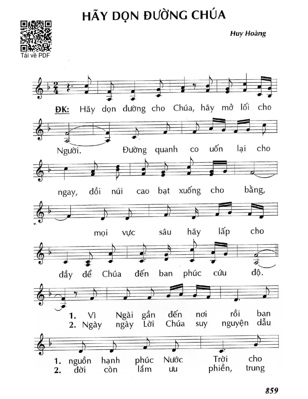 Trang 2 của Sheet nhạc PDF bài hát Hãy dọn đường Chúa - Huy Hoàng