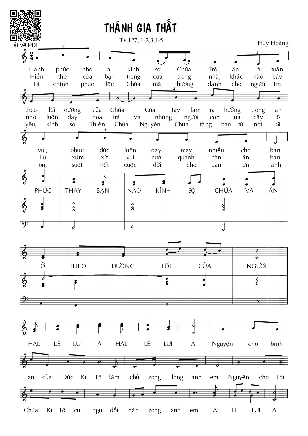 Sheet nhạc có nốt Đáp ca lễ Thánh Gia Thất của nhạc sĩ Huy Hoàng và file PDF nốt nhạc đăng lên đây nhằm giúp các bạn xướng âm cho đúng nốt và hát thêm hay, chỉ mang tính chất tham khảo, không có mục đích thương mại. Bản quyền thuộc về tác giả và tổ chức nắm bản quyền, Truongca.com không giữ bất kỳ bản quyền của nội dung nào cả. Các bạn có thể tải về bản PDF chất lượng cao, gồm khuông nhạc có nốt với đường link file PDF bên trên.