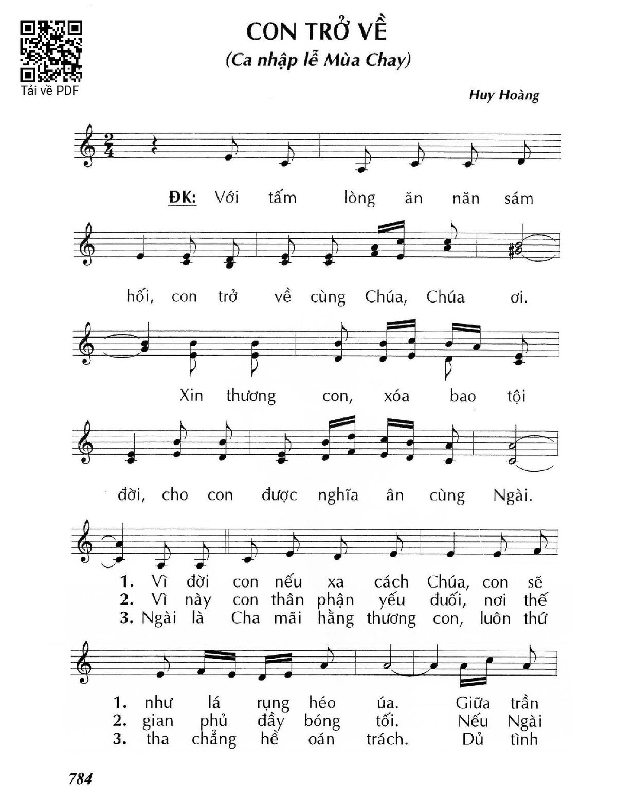 Sheet Con trở về PDF (Huy Hoàng), hợp âm