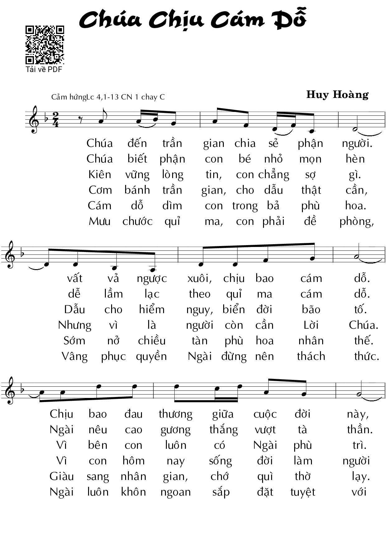 Sheet Chúa chịu cám dỗ PDF (Huy Hoàng), hợp âm
