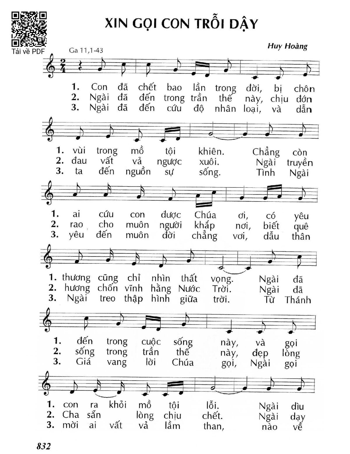 Sheet nhạc có nốt Xin gọi con trỗi dậy của nhạc sĩ Huy Hoàng và file PDF nốt nhạc đăng lên đây nhằm giúp các bạn xướng âm cho đúng nốt và hát thêm hay, chỉ mang tính chất tham khảo, không có mục đích thương mại. Bản quyền thuộc về tác giả và tổ chức nắm bản quyền, Truongca.com không giữ bất kỳ bản quyền của nội dung nào cả. Các bạn có thể tải về bản PDF chất lượng cao, gồm khuông nhạc có nốt với đường link file PDF bên trên.