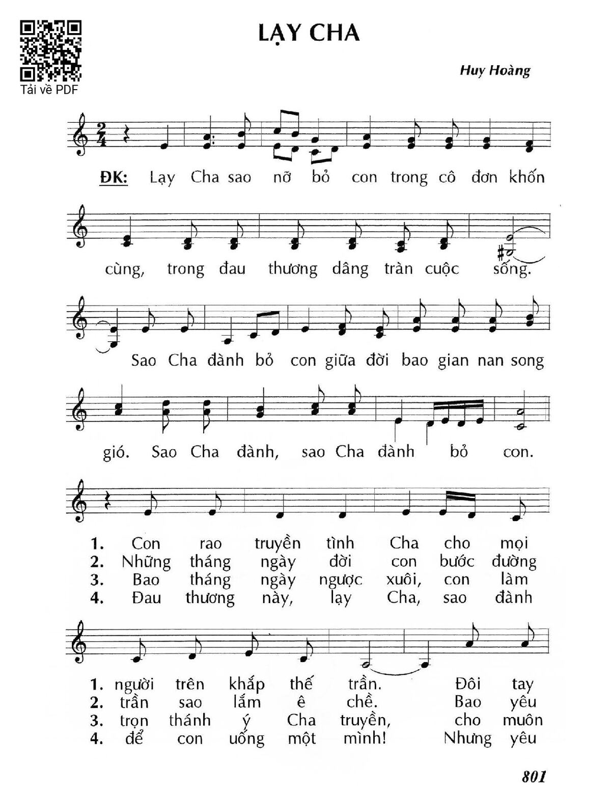 Sheet Lạy Cha PDF (Huy Hoàng), hợp âm